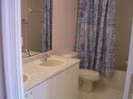 3 bedrooms 3-1/2 baths 1 car garage, tile and wood floors throughout, 1st floor bathroom updated, each bedroom has its own full bathroom, fridge with icemaker, dishwasher, flat top stove, microwave above, washer and dryer, community pool, gated community.