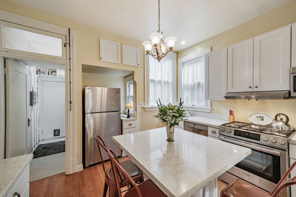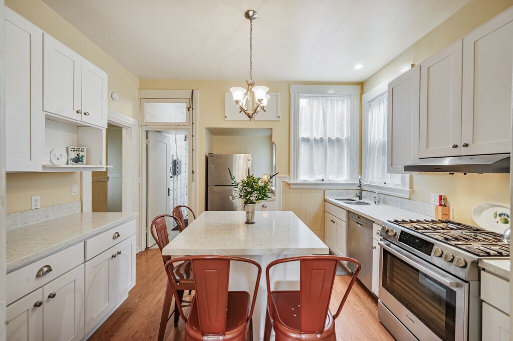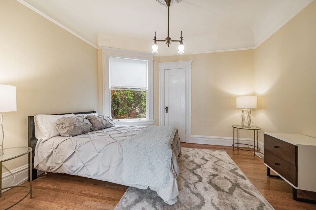Step into this impeccably styled Edwardian Condo, thoughtfully renovated in 2018, nestled in the vibrant heart of Presidio Heights. Elegance resonates throughout this residence, boasting classic San Francisco architectural features including wainscoting, crown moldings, and vintage light fixtures. It features two charming fireplaces, one in the inviting living room and another in the sophisticated dining area (decorative purposes only). Experience the flood of natural light streaming through the front and rear windows, casting a warm glow over the shared backyard below. This residence boasts two generously sized bedrooms alongside a cozy third bedroom, perfect for a home office. Delight in the split bath, enhanced by vaulted ceilings and hardwood floors that extend throughout. The renovated kitchen, complete with a spacious center island, complements the built-in hutch in the formal dining room. A separate laundry room, equipped with a washer and dryer, adds convenience. Additionally, discover a fully finished private storage room featuring windows overlooking the serene shared backyard and garden, offering versatile use as an office space or storage for strollers and bicycles. Nestled in one of San Francisco's most coveted and picturesque neighborhoods, this property boasts a remarkable walk score of 97. Enjoy unparalleled convenience with effortless access to an array of signature restaurants, boutique stores, charming cafes, and lush parks. Just a stone's throw away lies the Laurel Heights Shopping Center, while the nearby #1 express bus offers seamless transportation to the bustling financial district. Near JCC gym/pool, Clay Street park, Julius Kahn Park, Presidio Library. Rent: $5,500.00 Security Deposit: $5,500.00 Application Fee: $40.00 Flexible Term Water & Trash Included Property Offered FURNISHED Street Parking: Interested tenants who needs parking may check Long Term Parking availability at 3490 California Street Parking ( building wraps around Locust and California St ) entrance to parking garage is on Locust. 414 Locust St San Francisco CA 94118 For more information and viewing Appointments: Call/Text: Gina Ocampo CADRE#01725219