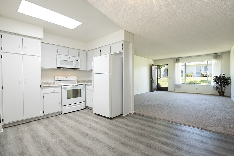 Mature Living at it's best! Renovated from top to bottom this single-story home in Oceana's 55+ community is sure to WOW! Enjoy large picture windows, views & ocean breezes from your oversized great room. Features like an attached garage, optional patio or addition carport make this property a place to call home. Additional features include, engineered flooring, new carpet, new appliances, new bathrooms, lighting, large closets & more! Don't miss this upgraded unit with a view! Custom paint through, huge windows, the dining room chandelier and the kitchen skylight give this home amazing natural light! Pets upon approval. Per CC&R, only 1 dog & a max of 2 cats **Please note this property is a 55+ property** Oceana South II a 55+ community with a gated pool, spa and clubhouse adjacent to Emerald Isle Golf Course. Near Trader Joe's, Starbucks, restaurants, library, senior center, sprinter station and bus stops. Owner pays HOA including: water, trash, and front yard maintenance.