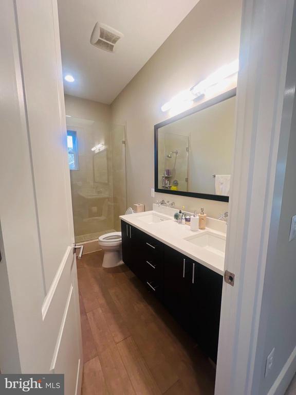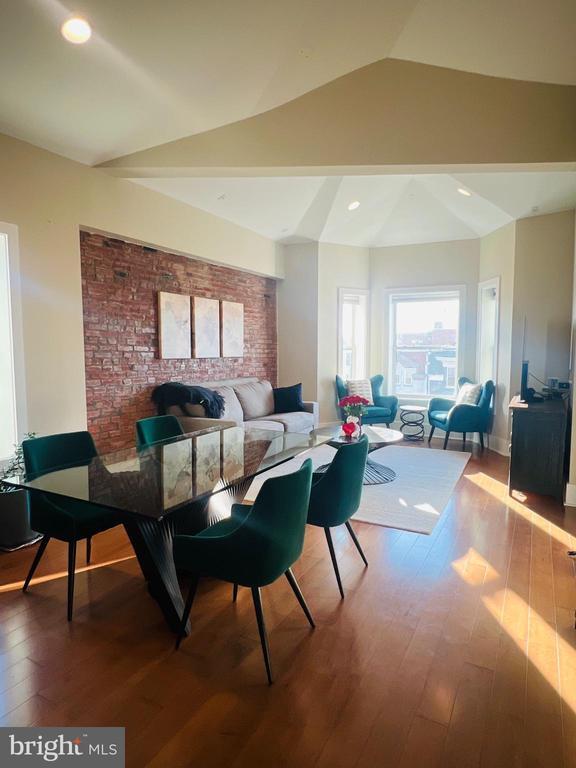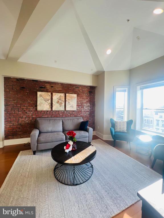 Stunning sunlit 2 bed 2 bath penthouse in a boutique 9-unit building. This extremely spacious, renovated unit features an open floor plan, 15 ft vaulted ceilings, exposed brick, bay window, recessed lighting, stainless steel appliances, in-unit washer/dryer, and spacious private rooftop. Two generously sized bedrooms with plush carpeting, lots of closet space, and luxurious ensuite bath with glass enclosed shower. There’s bike storage and a courtyard with common outdoor grill and fire pit area as well. Conveniently located steps away from the metro, shopping, bars/restaurants. Pet-friendly w/nearby dog park. Garage parking could be available. No smoking, no short-term/ rentals. Please be mindful it is currently occupied.