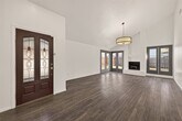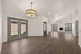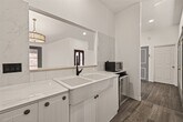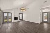 Nestled on a quiet cul-de-sac,this light-filled home features soaring vaulted ceilings,abundant windows,and a cozy gas fireplace in the main living area. The stylish kitchen offers marble countertops,a wine fridge,built-in microwave,modern light fixtures,and a classic white ceramic double sink. The oversized primary suite is a true retreat with plush luxury carpeting and extra padding for ultimate comfort. The ensuite bath showcases dual vessel sinks atop antique-style cabinetry and a stunning oversized mirror with an ornate gold frame. Secondary bedrooms are generously sized. Outside,the expansive fenced backyard wraps around the home,with the front entry thoughtfully located behind the fence for added privacy and security. MLS# 14978897