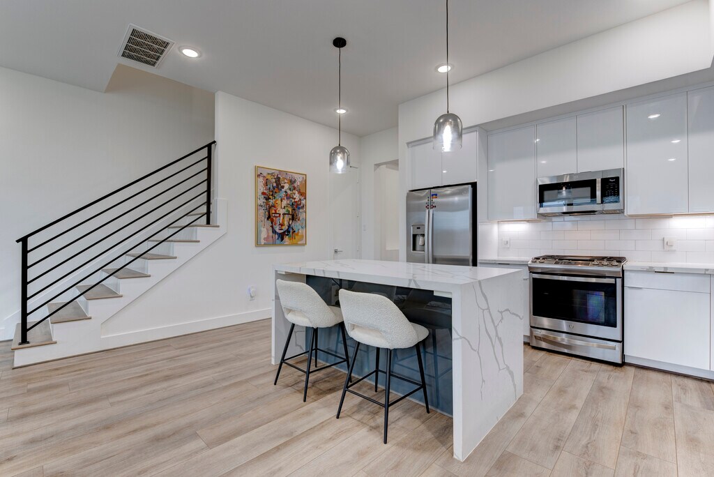 Stunning New Construction Completed December 2023! Still has that brand-new home smell! Welcome to this beautiful 3-bedroom, 3.5-bathroom, 2,000 sq. ft. home located in Leeland Park, right next to EaDo. Step inside the 10-ft ceilings and hardwood floors throughout. This thoughtfully designed 2-story home features all bedrooms upstairs, and every bedroom has its own private bathroom and walk-in closet. The primary suite is a retreat with an expansive 15-ft walk-in closet complete with shelving. The primary bath boasts a freestanding soaking tub separate from a large walk-in shower with bench seating. Enjoy the quartzite countertops that resemble marble throughout the entire home, and the convenience of all appliances included, plus a brand-new front-loading washer and dryer. A 2-car garage with opener provides easy access and storage. Unbeatable Location! Just 5 minutes from Dynamo Stadium, Minute Maid Park (Astros), Toyota Center (Concerts & Rockets), and all the excitement of Downtown Houston. Only 15 minutes to NRG Stadium for Texans games and major events. With the expansion of Highway 59 through EaDo, this area is rapidly growing, making this home not just a beautiful place to live, but a place for the future.