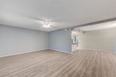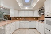 Spacious townhome located in a gated community with amenities including pool, spa, tennis courts, basketball courts, park, playground, and RV/boat parking. Home features vinyl plank flooring downstairs, new carpet upstairs, and an updated walk-in shower in the primary bathroom. The primary bedroom is located on the first floor with private bathroom, walk-in closet, ceiling fan, and patio access. Open living and dining area with a custom stained-glass window and sliding doors leading to a low-maintenance, fully concrete backyard. Kitchen opens to the main living space. Upstairs includes two additional bedrooms and a full bathroom. Additional features include plantation shutters throughout and an attached garage with built-in cabinets, workbench, and shelving. Convenient location near shopping, dining, and major roadways.