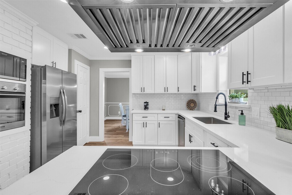 This wonderfully remodeled home with 4 bedrooms and 2 1\2 baths sits on a corner lot with partial views of Lake Houston,nestled in the peaceful well-established community of Lake Shadows. Gorgeous all white kitchen with all new stainless-steel appliances and quartz countertops. Large breakfast area with huge sliding window. Formal living room and dining room with crown molding/wainscotting and tons of light. Family room with brick fireplace,beamed ceilings and oversized sliding patio door leading to patio. Primary bedroom has en-suite bathroom with double sinks,large walk-in seamless glass enclosed shower. All TOP end high efficiency windows and doors installed throughout. Luxury vinyl plank flooring throughout. Utility room in house with 1/2 bath,tankless hot water heater. Short walking distance access to private pool,boat ramp,fishing pier,park/picnic area and playground. Truly an impeccable property! NEVER FLOODED AND NOT IN A FLOOD ZONE. MLS# 52476341