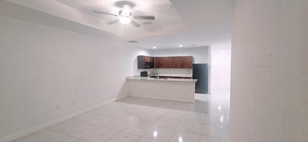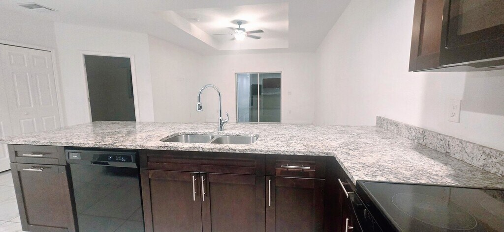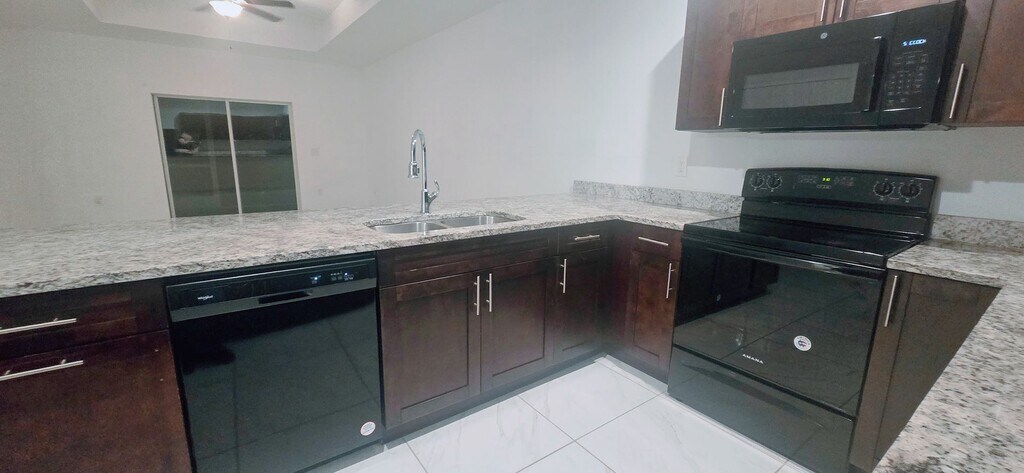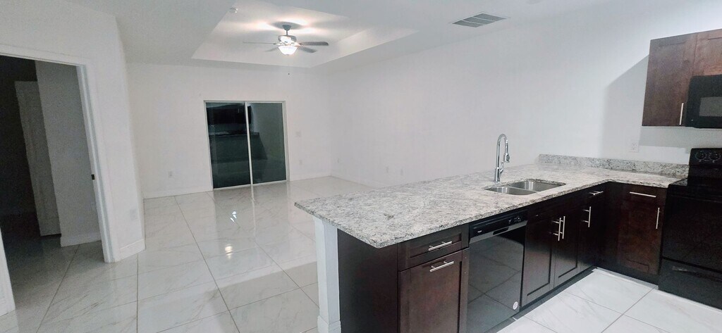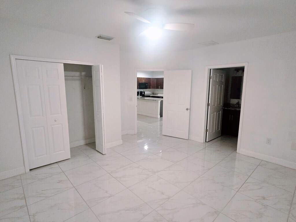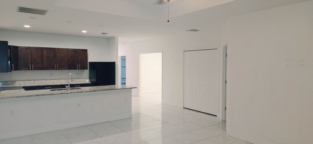 Welcome to 352 Justice Ave-Duplex, a charming two-bedroom, two-bathroom home nestled in the heart of Lehigh Acres, FL. This duplex offers a private setting with a large backyard, perfect for outdoor activities or simply enjoying the serene surroundings. The home features a spacious primary bedroom with an en-suite, equipped with a large tiled shower, ensuring your comfort and convenience. The second bedroom is split from the primary, providing additional privacy. The kitchen is a chef's dream with granite counters, a large island, and a full appliance package. The open den is perfect for entertaining or relaxing. The large rear screened lanai is an added bonus, perfect for enjoying the Florida weather. This home also comes with a one-car attached garage, adding to its appeal. Pets are welcome, making this a perfect place for all members of your household. With one of the lowest rental prices in Lehigh Acres, this move-in ready home is a steal. Don't miss out, see it today!