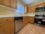 This charming condo in Summerlin offers a blend of classic charm and modern updates. The kitchen features traditional wood cabinets with newer stainless steel appliances, including a gas range and French-door refrigerator. Enjoy a spacious layout with wood-look laminate flooring, ceiling fans, and a private outdoor area. A walk-in closet with built-in organizers adds to the appeal. This property is move-in ready!