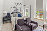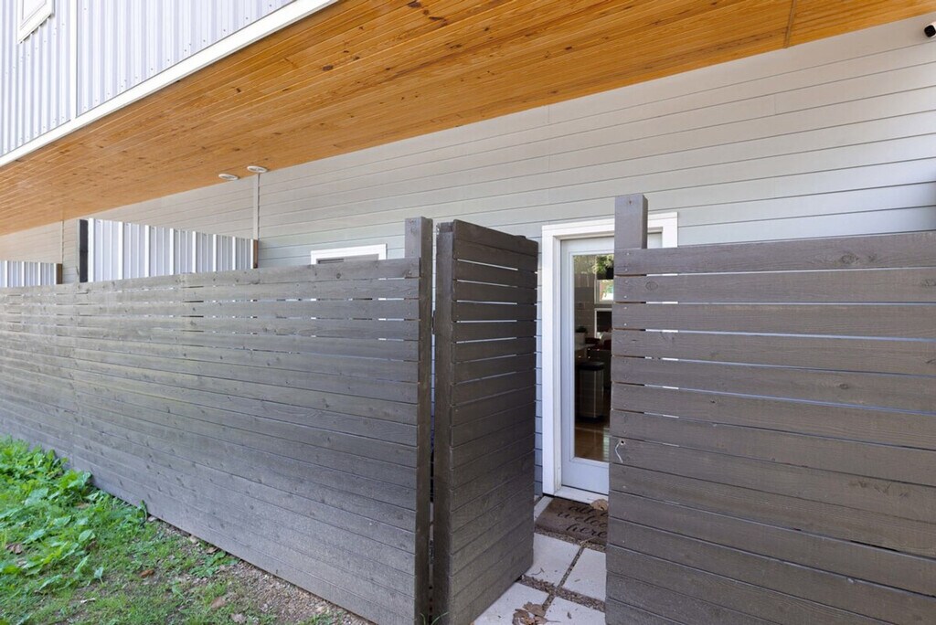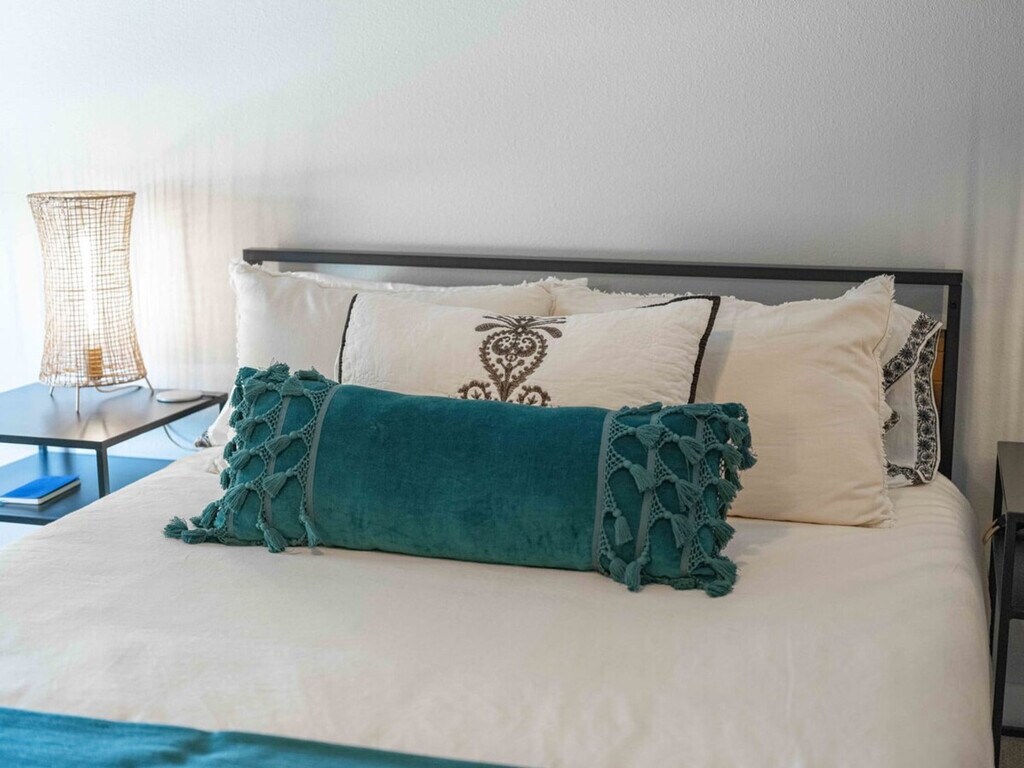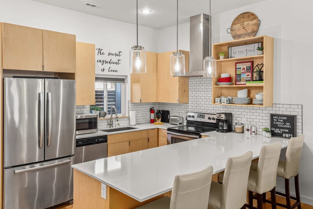 Experience the best of Fayetteville in this chic 2-bedroom townhome, ideally located within walking distance to the University of Arkansas, Razorback Stadium, and the vibrant Dickson Street. Feel at home with stylish decor, plush queen beds, and a queen sofa sleeper, complemented by a fully equipped kitchen with full-size appliances, cookware, and complimentary coffee and tea. Your Fayetteville retreat boasts an open-concept living area with comfortable seating, a smart TV, and a dining bar that seats four. Upstairs, you'll find two serene bedrooms with queen beds and crisp linens. The primary bedroom features an en-suite bathroom with a walk-in shower, while a second full bath with a tub/shower combo serves the home. A queen sofa bed in the living room provides extra sleeping space. Enjoy the convenience of free parking with a reserved space behind the condo and ample street parking, ensuring no hassle on game day. This condo is conveniently located just a 15-20 minute walk (about 0.8 mile) to the University of Arkansas campus and a 20-25 minute walk (about 1.1 mile) to Razorback Stadium. Dickson Street’s restaurants, bars, and shops are only a few minutes away by car or a short stroll. Nearby attractions include the Botanical Garden of the Ozarks (17 min drive), Lake Fayetteville (19 min drive), Crystal Bridges Museum of American Art (35 min drive), and Northwest Arkansas National Airport (38 min drive). The property maintains a quiet environment with noise sensors and exterior security cameras for your safety. Guests must adhere to house rules: no smoking indoors, no parties or events without prior approval, and no unapproved pets. Violations will incur fees, such as a $1,000 remediation fee for indoor smoking, a $1,000 charge for unauthorized events, and a $500 fee for unapproved pets. Unregistered overnight guests will incur a $50 fee per guest, per night. Unapproved late check-outs will result in a $100 fee, and unauthorized early check-ins will incur a $50 fee. Your privacy is respected with no interior cameras, and any smart devices can be disconnected if desired. Excessive cleaning required after departure will result in additional fees. The apartment offers high-speed Wi-Fi, a smart TV, an in-unit washer/dryer, and a dedicated workspace, making it remote work-friendly. [SI]