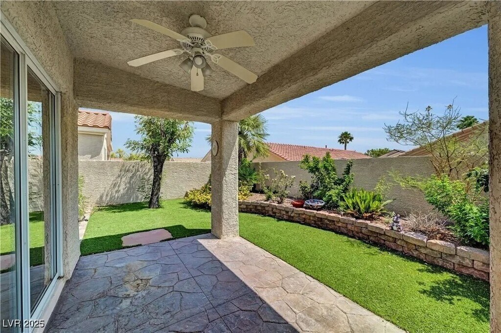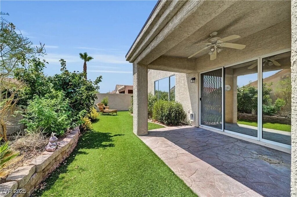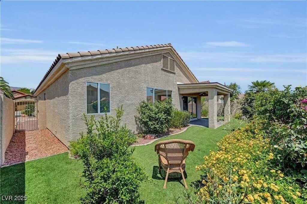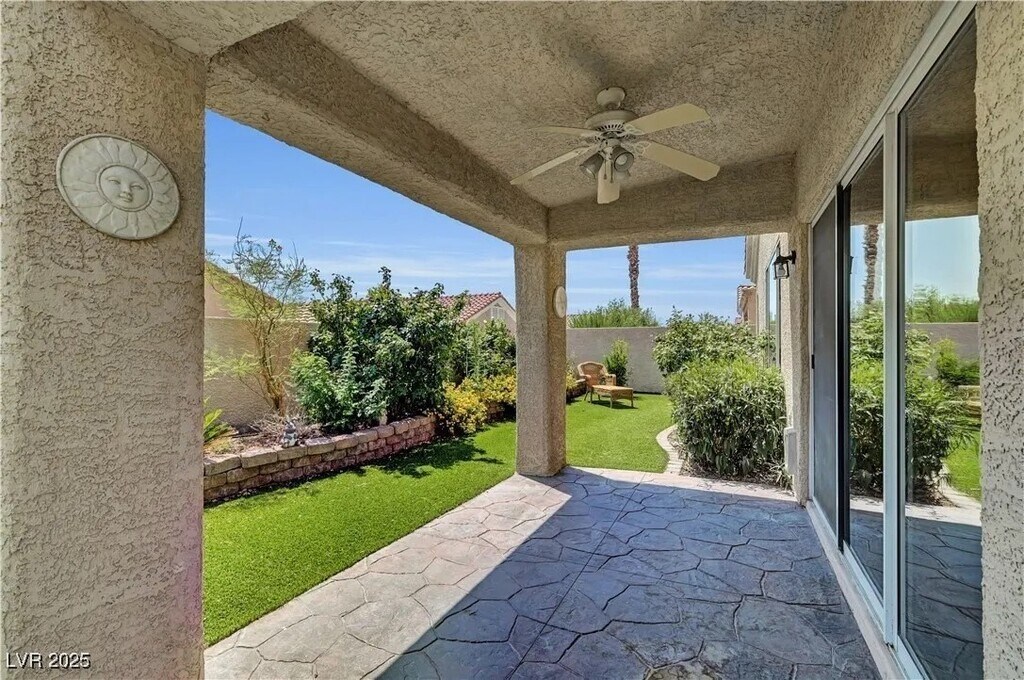 Beautifully updated 3-bedroom, 2-bath single-story home tucked inside a quiet gated community. Enjoy an open-concept family room with high ceilings, plenty of natural light, and a cozy gas fireplace. Pet friendly with a dog door. The private backyard offers a relaxing retreat with low-maintenance synthetic grass and a covered patio — perfect for outdoor dining or entertaining. All appliances are included, and the home is move-in ready. Conveniently located near Lone Mountain, Northshore Community Park, top-rated schools, shopping, and dining. A true must-see!
