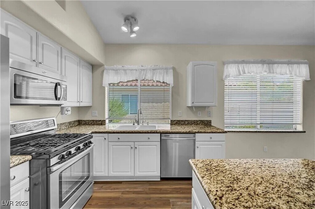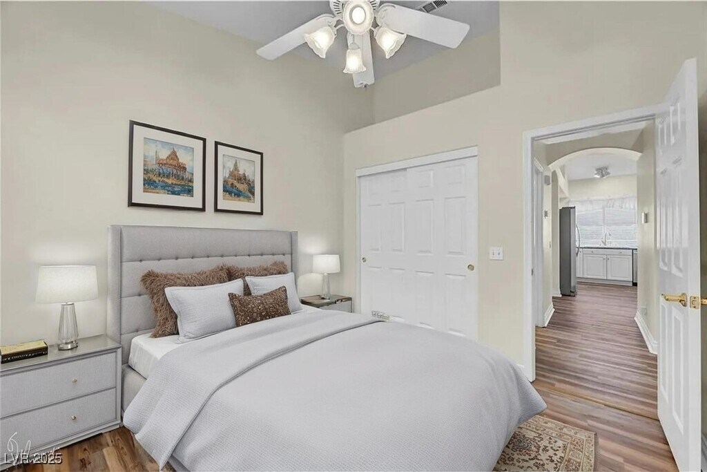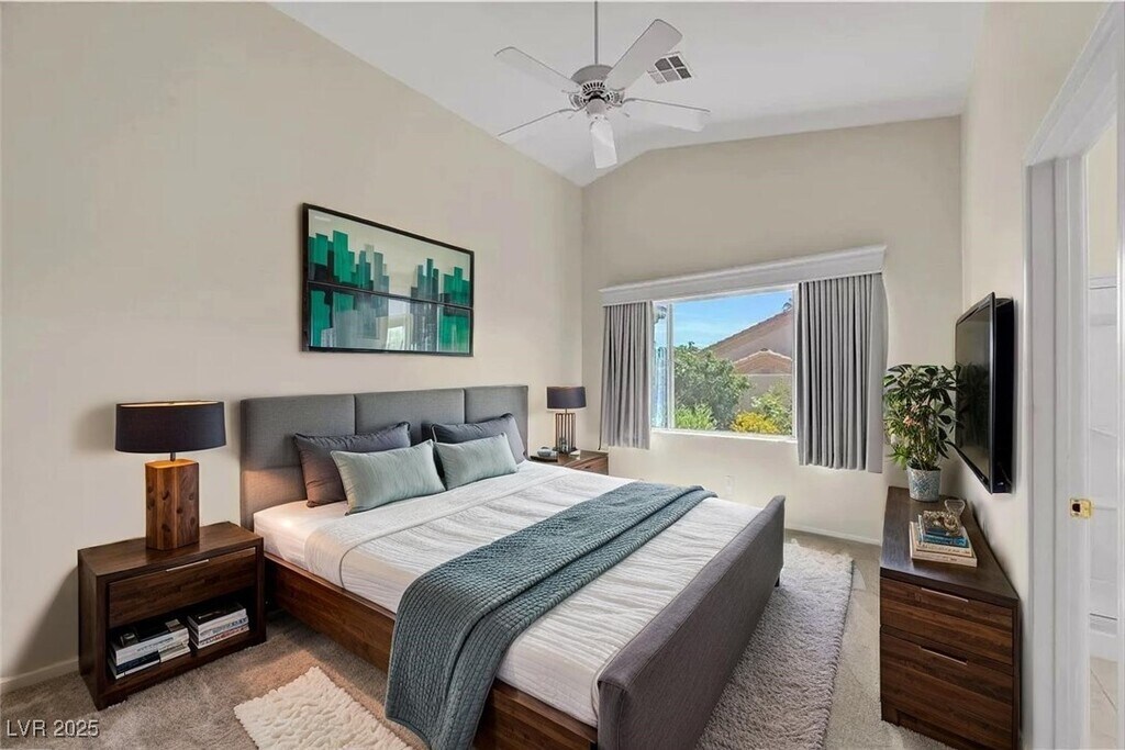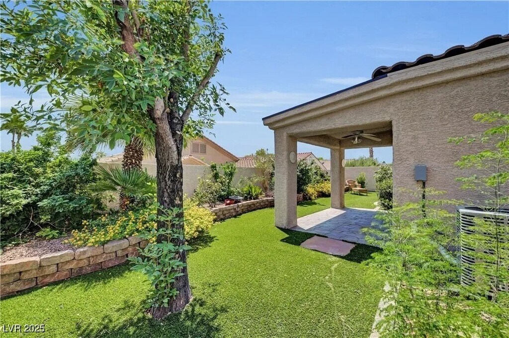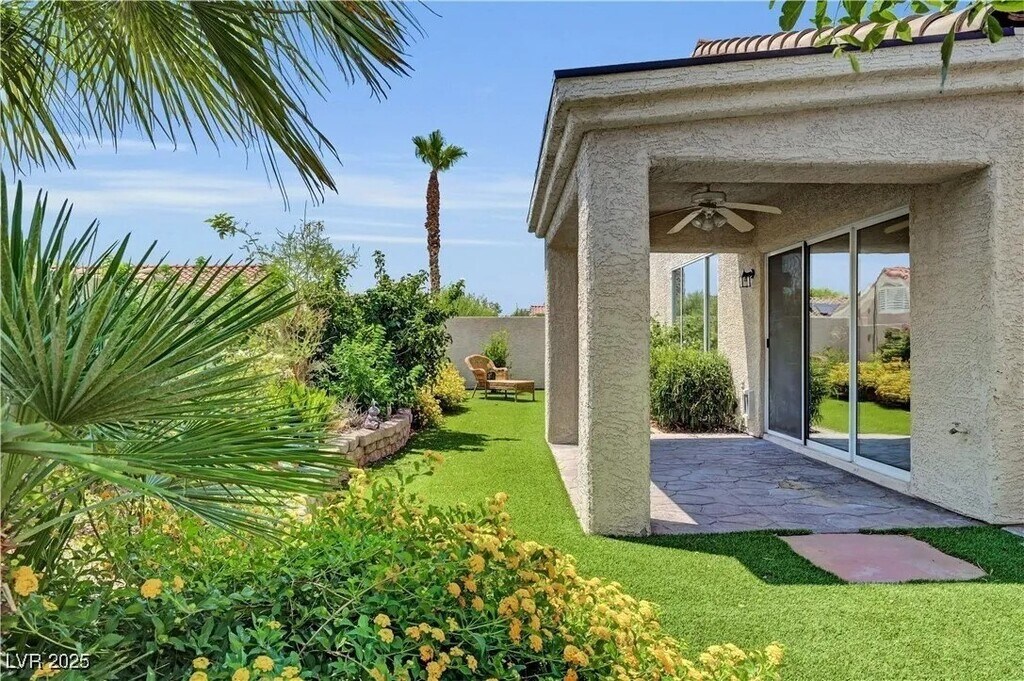 Beautifully updated 3-bedroom, 2-bath single-story home tucked inside a quiet gated community. Enjoy an open-concept family room with high ceilings, plenty of natural light, and a cozy gas fireplace. Pet friendly with a dog door. The private backyard offers a relaxing retreat with low-maintenance synthetic grass and a covered patio — perfect for outdoor dining or entertaining. All appliances are included, and the home is move-in ready. Conveniently located near Lone Mountain, Northshore Community Park, top-rated schools, shopping, and dining. A true must-see!