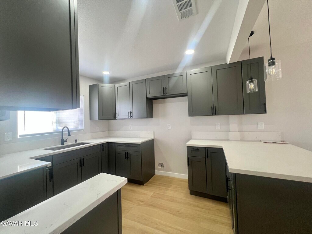 Como and see this beautiful completely remodeled house, like new. 3 good size bedrooms, one of them is the master bedroom very spacious with it's own private full bathroom and walking closet. A stunning new open kitchen, beautiful wood like laminated floors thru the house. Central air and heat. right on the border of Palmdale and Littlerock.