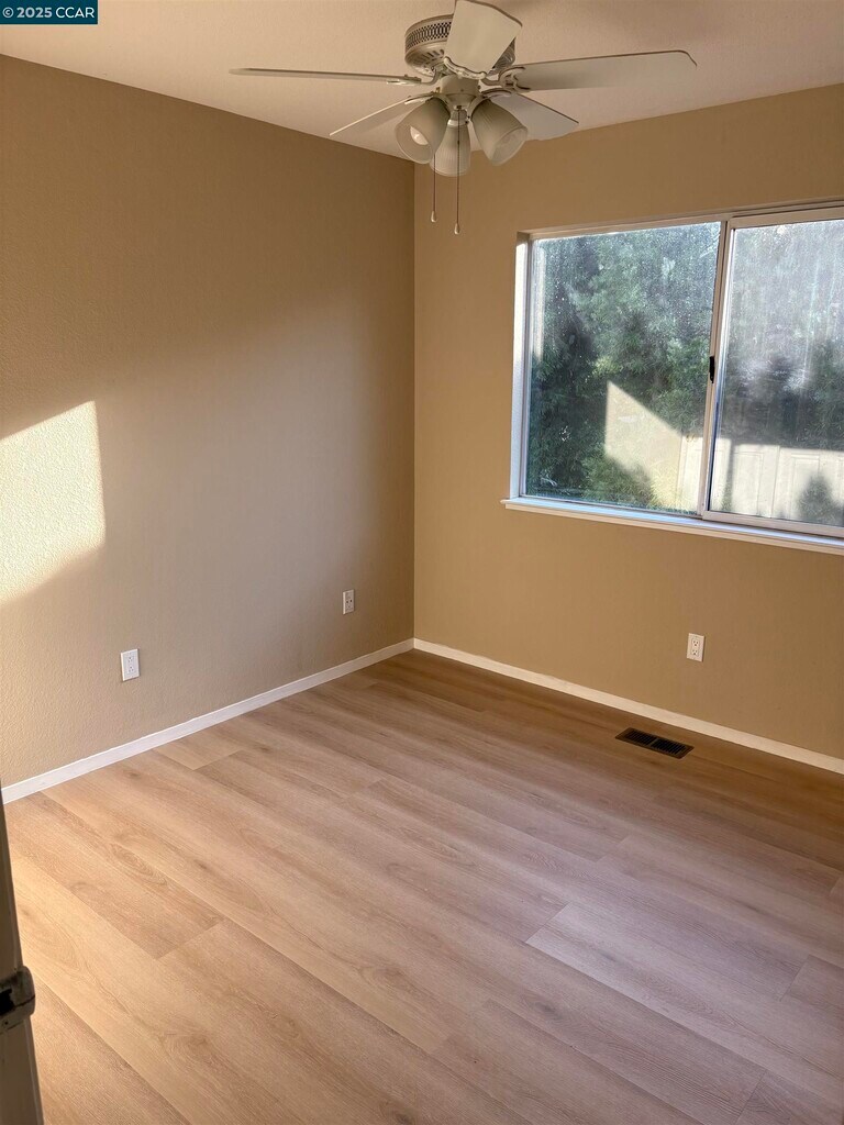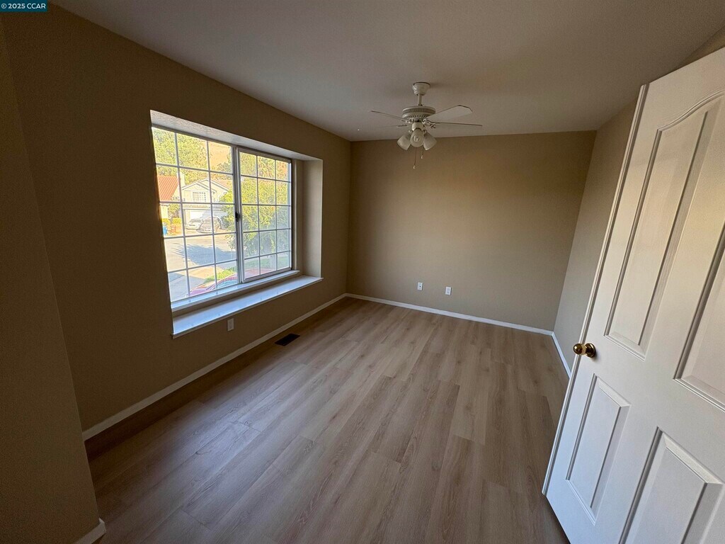 The 4th bedroom currently used as a den without closet. Quiet and convenient location. Vaulted ceiling,1/2 bath downstairs,low maintenance yards with storage shed and possible RV or boat parking on side yard. Fresh interior and exterior paint throughout,new laminated wood floor,new front and garage back doors. Ceiling fans in all bedrooms.