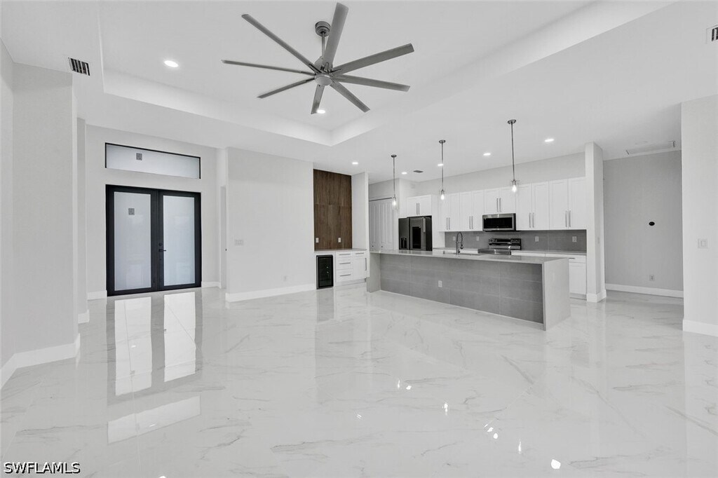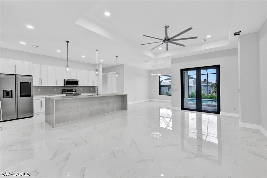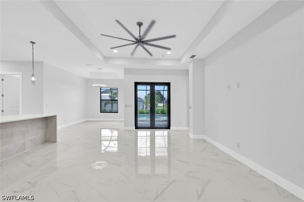 Stunning Rental Home in Cape Coral,FL! Welcome to this brand-new home in the sought-after Northwest Cape Coral,west of Burnt Store Road. Surrounded by canals,golf courses,and entertainment,it offers the perfect blend of tranquility and convenience. This beautiful crafted 2,135 sq. ft. home features 3 bedrooms + DEN,3 bathrooms,and a 2-car garage,with 10-11 ft. high ceilings enhancing the open and airy feel. The gourmet kitchen boasts a stylish waterfall island,sleek white cabinets,and smart appliances. The bathrooms include frameless glass enclosures,while the luxurious main bath offers dual showers and vanities for a spa-like experience. Step outside to a covered lanai and a private screened-in pool with limestone pavers,perfect for relaxation or entertaining. Hurricane impact windows provide security and peace of mind. Experience the best of Florida living in this exceptional rental home!