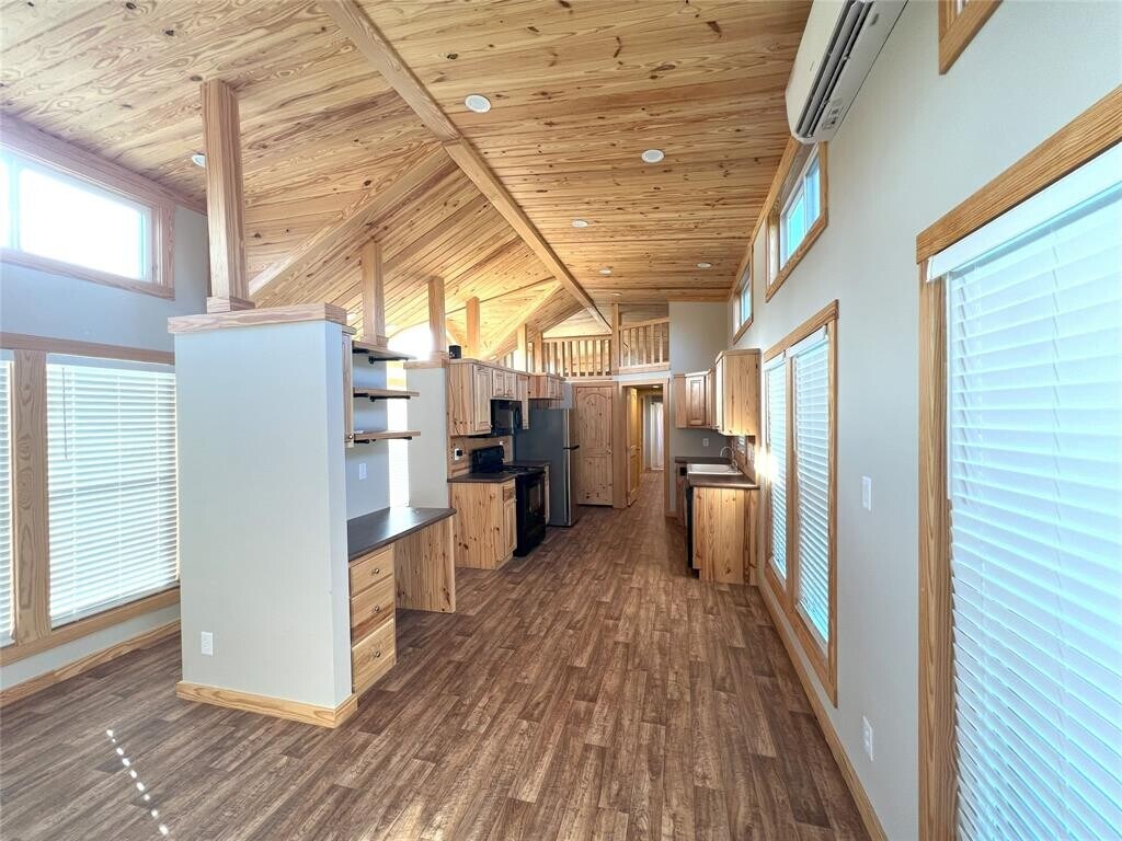 This home is like a cabin in the woods on 1-3 acres for you to enjoy . You have your own private driveway along with with extra privacy created by the trees, which provide a peaceful and beautiful setting to call home. There is no carpet through out the home on the main floor. The home also has loft, which is carpeted and is a great space for storage and much more. The home comes equipped with a refrigerator, stove, microwave, dishwasher, full size washer and dryer hook ups, and even a fireplace. Utilities are shared with the main property and your portion would be $300/mo., which would be in addition to your $1100/mo. rent, this includes electricity, water, and internet ($1400/mo w/utilities). There is also a private road fee of about $200 every 4 months.