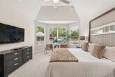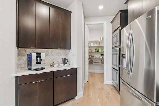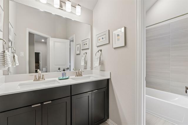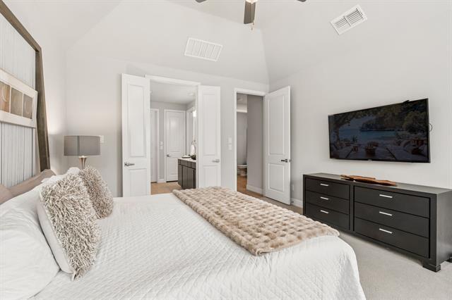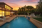This exceptional original-owner Meritage home offers a rare opportunity to lease a thoughtfully designed, energy-efficient residence on a premium oversized corner lot. Combining modern architecture with elevated finishes and advanced construction, this home delivers both luxury and performance. Engineered for efficiency and comfort, the home features spray foam insulation, radiant barrier roof decking, Low-E windows, Energy Star appliances, sealed ductwork, and a high-performance HVAC system with fresh air management—plus smart home automation for lighting, thermostat, garage, and security. A whole home water filtration system provides clean, high-quality water throughout. Inside, expansive open-concept living spaces are filled with natural light and defined by hardwood flooring, soaring ceilings, and a dramatic open-to-below design. The living room features a sleek modern fireplace and flows into the dining area and kitchen, ideal for entertaining. The kitchen is anchored by an oversized quartz island and complemented by a herringbone stone backsplash, flat-panel cabinetry, double Whirlpool ovens, gas cooktop, wine refrigerator, walk-in pantry, and coffee bar. The main-level primary suite offers vaulted ceilings, a sitting area with pool views, and a custom California Closet. The spa-inspired bath features an oversized soaking tub, glass-enclosed shower with seating, dual vanities, and designer finishes. Built for long-term stability, the home features the Tella Firma foundation system and includes a 2-year structural warranty. Upstairs, a private guest suite with en suite bath and vaulted ceiling provides flexibility for multigenerational living, along with additional bedrooms, a spacious game room, and a dedicated media room with surround sound. Outdoors, enjoy a resort-style escape with a heated saltwater pool, fountains, lounge ledge, fire pit, Blaze grill, covered patio, extended concrete decking, and ambient lighting—perfect for entertaining & everyday living