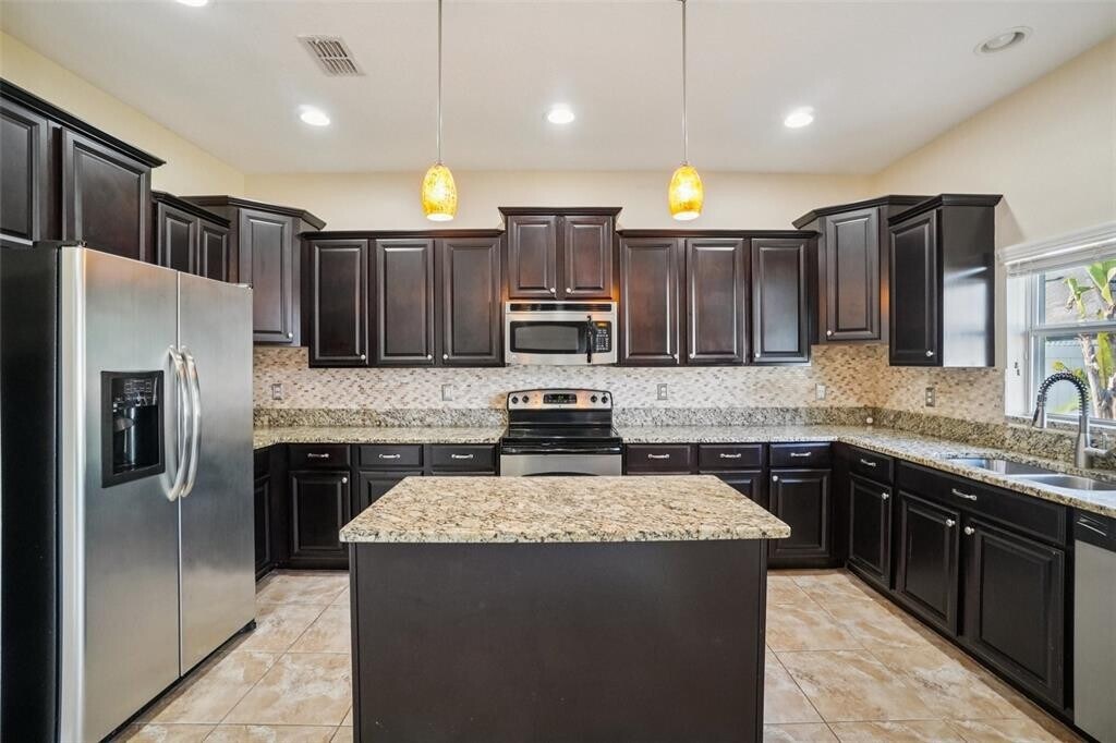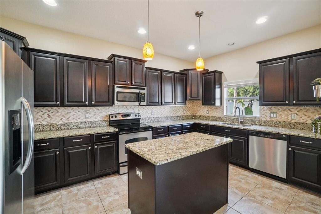 Outdoor kitchen on covered lanai. Built-in dry bar with wine refrigerator. Fenced backyard with room for possible pool. This 4-bedroom,2.5-bath,2,441 sq ft two-story home sits in Concord Station,one of Land O' Lakes' established master-planned communities off SR 54. The main level features a distinct dining area,a dedicated living room,and an open-concept family room with hardwood flooring throughout. The kitchen includes espresso staggered cabinetry,granite countertops,stone tile backsplash,stainless steel appliances,a center island,walk-in pantry,and pendant lighting. A built-in dry bar with granite countertop,wine rack,glass storage,and wine refrigerator in the dining room. The covered lanai opens to a fully equipped outdoor kitchen with built-in stainless grill and stone surround overlooking the vinyl fenced backyard. All four bedrooms are upstairs,including a primary suite with walk-in closet,dual sinks,soaking tub,and glass-enclosed shower. Two secondary bedrooms are oversized and suited for home office,gym,or bonus room use. Upstairs laundry room adds daily convenience. Oversized 2-car garage with extra shelving installed. Concord Station amenities include a 5,000 sq ft clubhouse,resort-style pool with splash pad,fitness center,tennis and basketball courts,walking and biking trails,picnic areas,and playground. Charles S. Rushe Middle School and Sunlake High School are approximately 0.7 mi away. Oakstead Elementary is about 1.8 mi away. Starbucks and Publix at Shoppes at Sunlake Centre are nearby on SR 54. Additional dining and shopping along the SR 54 corridor includes options in both Land O' Lakes and Wesley Chapel. Land O' Lakes Heritage Park offers sports fields,walking trails,and community events. Land O' Lakes Recreation Complex provides indoor pickleball,basketball,soccer,and aquatic facilities. Cypress Creek Preserve offers paved and unpaved trail access for hiking and biking. Wiregrass Mall and Tampa Premium Outlets are a short drive east via SR 54. SR 54,Suncoast Pkwy,I-75,and US-41 provide direct access to Tampa,Wesley Chapel,and Tampa International Airport. RENTAL REQUIREMENTS: All adults must pass a background check,minimum 670 credit score,named leaseholders gross monthly income 3 times gross monthly rent,no evictions in the past 5 years and 2 years verifiable consistent employment. Association approval required. MLS# TB8496086