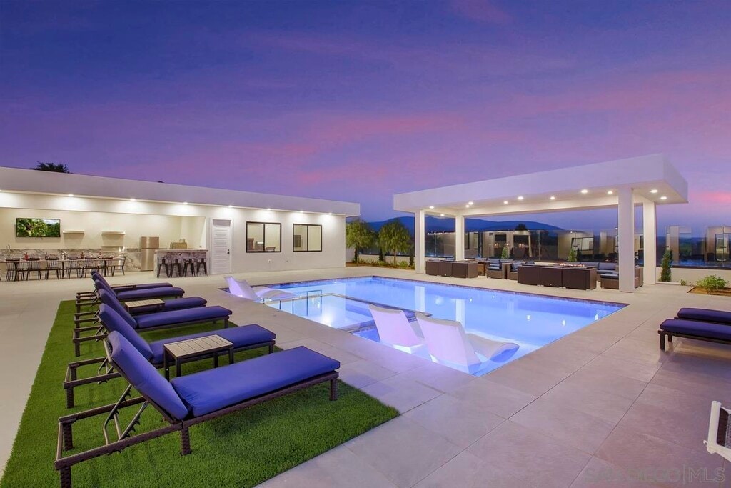 Villa Fabulosa is an architectural masterpiece and the ultimate destination for luxury and entertainment in the heart of Temecula Wine Country,accommodating up to 24 guests. Unmatched Location and Views: Enjoy breathtaking 360-degree views of rolling vineyards and hot air balloons as you immerse yourself in the magic of Wine Country. With over 55 wineries just minutes away,this villa is a dream getaway for wine enthusiasts and vacationers alike. Refined Interiors and Spacious Accommodations: Seven Bedrooms,5.5 Bathrooms: Perfectly designed for large groups,including a stunning bridal suite ideal for special occasions. Sophisticated Decor: Contemporary furnishings create an ambiance of elegance and relaxation. State-of-the-Art Kitchen: Equipped with premium appliances and every cooking tool imaginable. Missing something? Let us know,and we’ll provide it for your stay. Outdoor Luxury and Entertainment: Private Pool Area: Relax by the sparkling pool with two Baja shelves and enjoy sunsets under a pergola with seating for 20. Chef’s Outdoor Kitchen: Cook with two pizza ovens,a Teppanyaki grill,a large BBQ,burners,and a full outdoor refrigerator—all paired with a large-screen TV. Activities Galore: Professional 18-hole mini-golf,pickleball and basketball courts,bocce,and a professional 8' pool table offer endless entertainment. Indoor Fun for All Ages: The game room boasts arcade games,air hockey,foosball,shuffleboard,and a poker table for lively game nights. Luxury Amenities and Extras: Tesla chargers and an ADA-accessible bathroom for inclusivity and conv MLS# 250000860