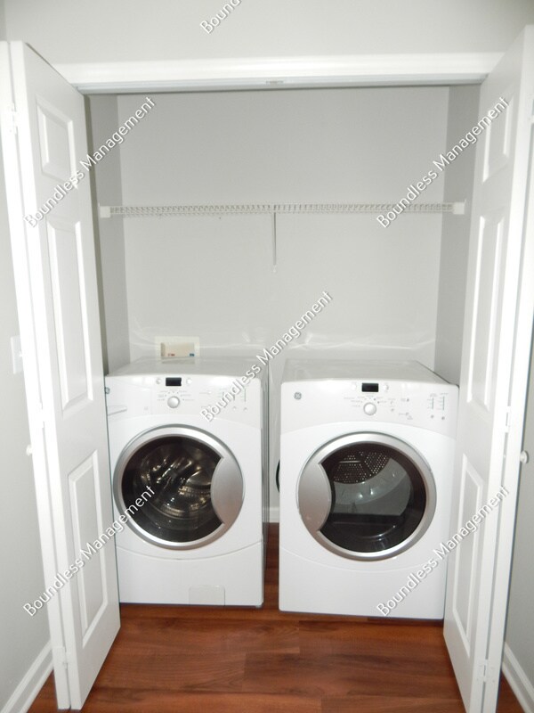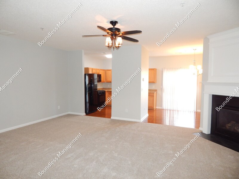 Freshly painted interior with new carpet, LVP flooring and light fixtures! This beautiful townhome offers a spacious living room, featuring a gas log fireplace, which flows easily into a bright kitchen with black appliances & a dining room that opens onto the backyard patio. The upper level, with new LVP flooring in all rooms & hallway, has three bedrooms & two baths - the primary suite features a walk-in closet, soaking tub, separate shower & double vanity. A front loading washer & dryer is provided for your convenience. Inside the community you'll find wide streets, sidewalks, street lights, swimming pool, lighted tennis courts, dog park, playground, & a picnic area with grills. HOA and exterior maintenance included. Outside the community is shopping galore and only a hop and a skip to 400. No Section 8. Pets allowed with a $200 fee and $200 deposit - 25 lb weight limit. No aggressive breeds. $85 application fee for anyone 18 years or older who will live in the property. Renter's insurance required.