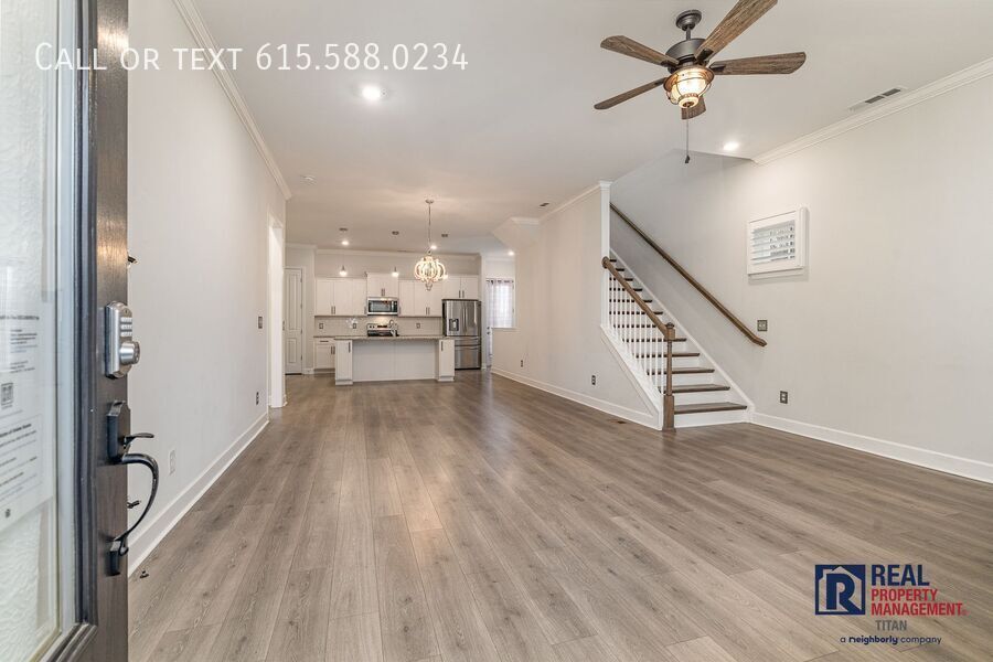 Style and location meet at Carothers Farms, Nolensville, with this spacious 3BR/2.5BA, 2,571 sq ft home situated on a beautiful, quiet corner lot. The fully appointed kitchen with stainless steel appliances, granite countertops, tile backsplash, and large island is the heart of the home connecting the living and entertaining spaces with elegant LVP flooring. The main floor primary suite is a spacious retreat with double vanity, walk-in shower, and large walk-in closet. The secondary bedrooms & bathroom are located upstairs as well as a bonus loft space with endless possibilities. Enjoy the outdoors from the lovely front porch, private deck, or fenced yard. No lawn mower necessary as lawn care is provided. Laundry room with washer/dryer included. Attached 2-car garage offers plenty of storage. Carothers Farms offers rural charm, green spaces, walking trails, a dog park, and a short drive to Nolensville's shopping, dining, and entertainment options. Commuting is a breeze with easy access to Nashville, Murfreesboro, and Cool Springs, and you'll stay connected with Free Internet. Don't miss this opportunity to embrace style, convenience, and comfort in one perfect package. Pet Friendly to approved dogs. Onboarding and technology fees apply. Call to schedule a convenient showing. Apply now at before this gem is gone! Internet