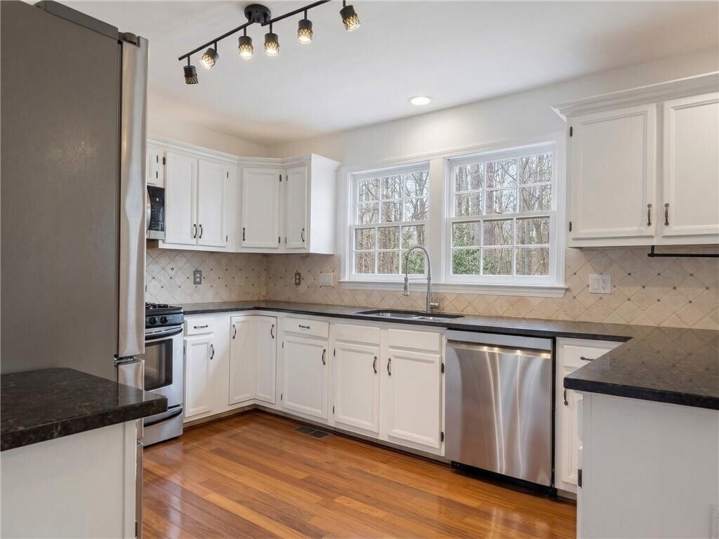 Don’t miss this incredible opportunity to lease a beautifully updated 5-bedroom,3.5-bathroom home in the desirable Woodbrooke community,zoned for top-rated Dolvin Elementary,Autrey Mill Middle,and Johns Creek High School! Ideally located within 3 miles of North Point Mall,GA-400,and Avalon,you’ll enjoy easy access to premier shopping,dining,parks,and the Greenway. This spotless,move-in ready home features a dramatic two-story foyer with wrought iron railings,hardwood floors throughout the main level,formal living and dining rooms,and an updated powder room. The bright,open kitchen boasts stunning quartzite countertops,stainless steel appliances including a beverage fridge,and an eat-in area that flows seamlessly into the fireside family room. Upstairs,you’ll find a spacious primary suite with dual vanities,a separate tub and shower,and a walk-in closet,along with three additional guest bedrooms and a full bath. The fully finished basement with luxury vinyl flooring offers flexible space for a media room,home office,gym,or guest suite. Enjoy outdoor living in the flat,fenced backyard complete with a charming stone fire pit,perfect for relaxing or entertaining. Freshly painted throughout with new LVP flooring upstairs and in the basement,plus a washer and dryer included,this home truly offers the perfect blend of style,space,and unbeatable location—schedule your tour today! MLS ID 7744435