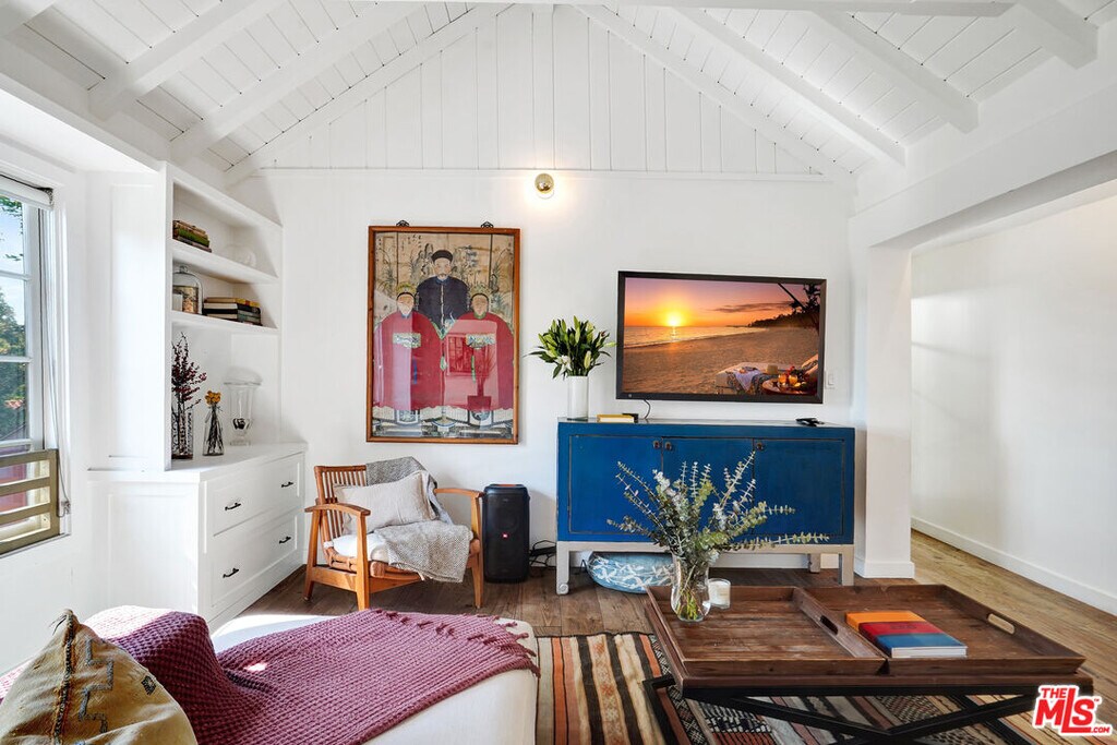 Set against sweeping canyon vistas moments from Lake Hollywood, this striking two-story guest residence offers a rare blend of architectural character and serene privacy. Dramatic exposed wood beams and soaring ceilings define the expansive living spaces, where walls of light frame picturesque hillside views. The thoughtfully curated layout features two bedrooms and one bath, complemented by an open living area that captures both warmth and scale. Natural textures, elevated ceilings, and tranquil sightlines create an atmosphere that feels both sophisticated and intimate. Privately positioned in one of Los Angeles' most coveted hillside enclaves, this residence offers a refined escape just minutes from studios, trails, and the energy of Hollywood yet worlds away in ambiance. MLS# 26655673