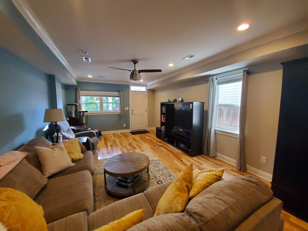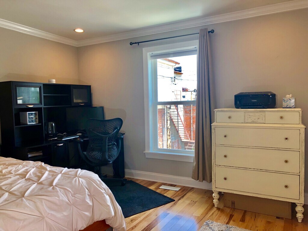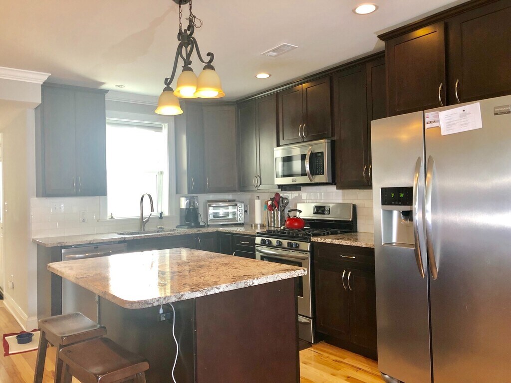 Discover the charm and comfort of this thoughtfully designed duplex home located in the lively Hampden community. With a spacious layout, modern finishes, and timeless details, this property blends character and functionality, perfect for those seeking convenience and style in a vibrant city setting. Step onto the inviting roofed front porch overlooking a neatly kept lawn and paved walkway, setting a welcoming tone as you enter the home. Inside, the living area offers a warm and inviting atmosphere with wood flooring, a ceiling fan, and abundant natural light, creating an ideal space for relaxation and entertainment. The kitchen serves as the heart of the home, featuring built-in cabinetry, an island counter with a breakfast bar, and stainless steel appliances including a stove/oven, microwave, refrigerator, and dishwasher, all designed for both function and style. Adjacent spaces flow seamlessly, providing a comfortable setting for dining and gathering. Each of the three bedrooms showcases wood flooring, ceiling fans, neutral tones, and generous natural light, offering a calm retreat for rest or productivity. The main bathroom is tastefully designed with tiled flooring, dual sinks, a vanity mirror, and a walk-in tiled shower, providing a refreshing start and end to your day. Additional features include a washer and dryer, an unfinished basement for storage or future customization, and street parking for easy access. Outside, enjoy a fenced and paved backyard, perfect for quiet relaxation, container gardening, or small outdoor gatherings. Pet Policy: Cats are welcome with a pet addendum and a $500 non-refundable fee. Dogs are not permitted. Nearby Landmarks & Conveniences: Steps from The Avenue in Hampden – restaurants, cafés, and boutique shops Close to Rotunda Shopping Center and Wyman Park Minutes from Johns Hopkins University and Druid Hill Park Call or text Ruth at Bay Management Group for details or to schedule an appointment at or email Easy access to I-83, Downtown Baltimore, and Penn Station All Bay Management Group Baltimore residents are automatically enrolled in the Resident Benefits Package (RBP) for $39.95/month, which includes renters insurance, credit building to help boost your credit score with timely rent payments, $1M Identity Protection, HVAC air filter delivery (for applicable properties), move-in concierge service making utility connection and home service setup a breeze during your move-in, our best-in-class resident rewards program, and much more! The Resident Benefits Package is a voluntary program and may be terminated at any time, for any reason, upon thirty (30) days’ written notice. Tenants that do not upload their own renters insurance to the Tenant portal 5 days prior to move in will be automatically included in the RBP and the renters insurance program. More details upon application. Application Qualifications: Minimum monthly income 3 times the tenant’s portion of the monthly rent, acceptable rental history, credit history, and criminal history. Baltimore Property Managers~