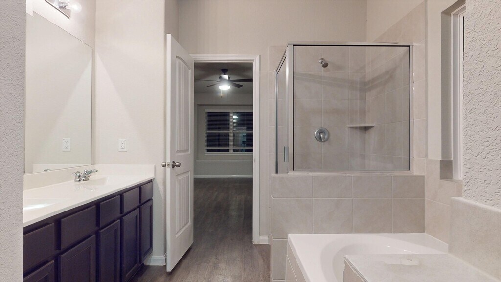 Welcome to this beautiful 4-bedroom home in the desirable Mackenzie Creek community! This home offers a large primary suite with a private bath featuring a separate garden tub and shower plus a dual-sink vanity. Inside,you’ll enjoy upgraded flooring,granite countertops,and stainless steel kitchen appliances. The living room and primary bedroom are equipped with ceiling fans for added comfort,and every bedroom includes a walk-in closet. Practical conveniences include a sprinkler system,prewired internet access,and garage door openers. Outside,a covered patio offers the perfect spot to relax in the evenings. Location is a breeze — with easy access to Highway 45 and just 15 minutes from 59. This home combines comfort,style,and convenience — a perfect place to call home. MLS# 17930274