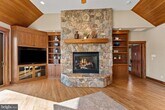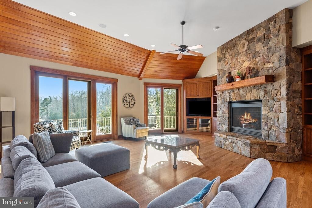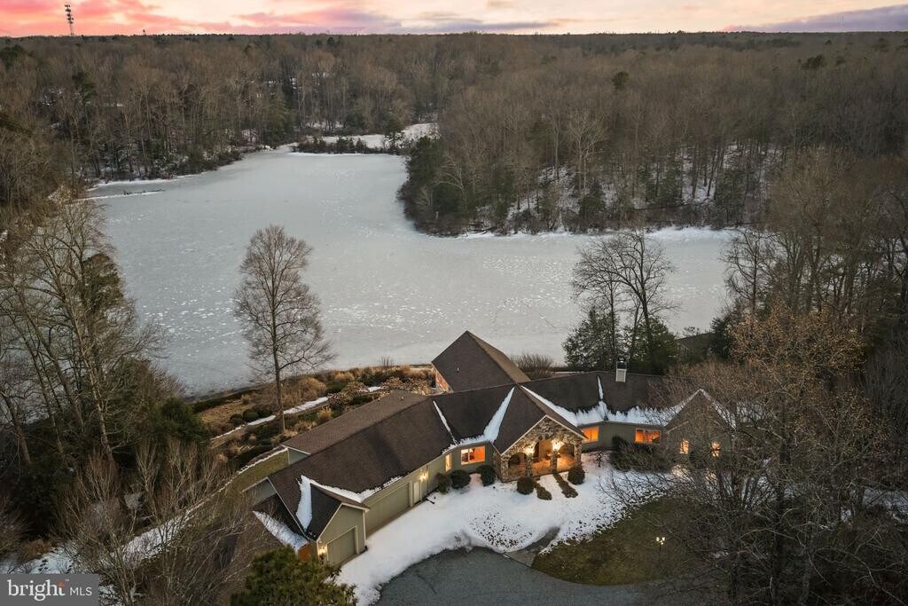 Private lakefront living, custom craftsmanship, and space for guests, hobbies, and entertaining. Set behind a gated entrance on over 30 acres, this one-of-a-kind waterfront estate delivers expansive space, refined construction, and year-round water views from nearly every room. Overlooking a stocked 9 acre pond with 2500 linear ft water frontage and a flowing spillway waterfall, the setting feels like a private nature preserve while still keeping you within easy reach of major routes and travel access. Designed and built with lasting quality in mind, the home showcases authentic stonework, soaring wood ceilings, custom-milled cabinetry, and thoughtfully selected finishes throughout. The layout offers five bedrooms and four and a half baths, including a spacious primary suite on the main level, additional bedrooms upstairs, and a fully finished walkout lower level with high ceilings and multiple living areas. The lower level creates incredible flexibility with recreation space, a custom bar, private guest quarters, and direct outdoor access. Two fireplaces add character and warmth, while dual laundry areas support the needs of a busy household or long-term guests. The upstairs loft area allows for a private guest retreat with an ensuite bathroom. Outdoor living is just as impressive as the interior. Professionally designed hardscaping, terraced patios, stone retaining walls, and a fire pit guide you down to the water’s edge. A screened pavilion on the pier offers a shaded spot for relaxing, dining, or enjoying peaceful views across the pond. The acreage invites fishing, paddling, trail walks, and exploring your own private landscape. The property features 3 nature trails, including a walk down to the waterfalls, a trail by the marshlands and a loop that overlooks a railroad crossing. Functionality matches the setting with extensive garage capacity for vehicles, hobbies, or travel gear, whole-home backup power, irrigation, high-speed connectivity for remote work, and plumbing already in place for a future pool. The home offers 16 garaged parking spots, including 5 attached, 9 in a detached structure, large enough to house a boat or RV. The detached structure includes a kitchenette, basketball court, and potential conversion to ADU. Every detail reflects careful ownership and consistent upkeep. If you have been searching for privacy, waterfront scenery, and a home built with intention and scale, this property deserves your attention. Reach out today to schedule a private tour!