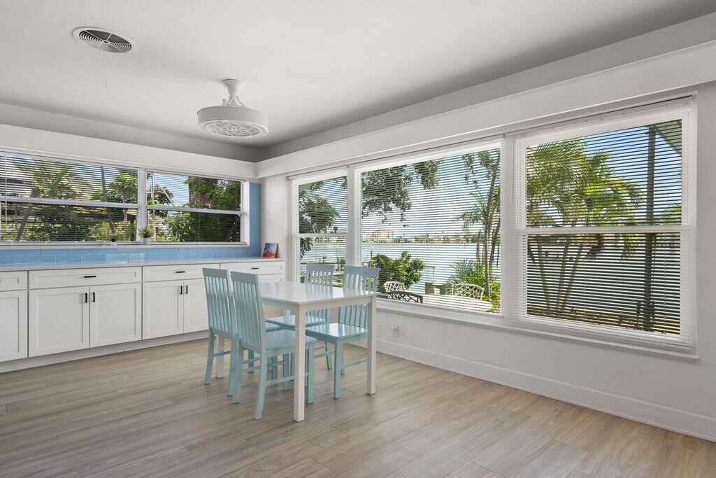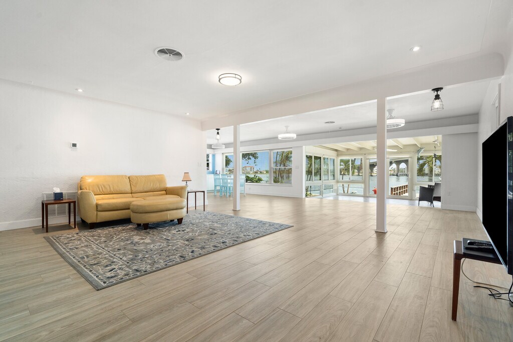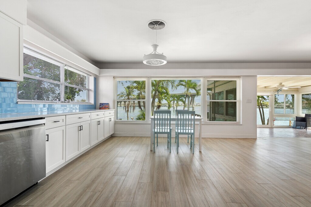 Live the waterfront lifestyle on Belle Vista Island in St. Pete Beach with this spacious two-bedroom, three-bathroom home offering breathtaking water views throughout. Available unfurnished or partially furnished, this residence is designed for both comfort and coastal living. Enjoy your mornings with serene sunrise views over the water and evenings relaxing on your private dock, complete with three pilings to accommodate your boat. The home features a brand-new kitchen and a beautifully renovated master bathroom, along with expansive dining, family, and living rooms that flow seamlessly into a large screened-in front porch. A bright Florida room with three walls of windows opens to the backyard and dock, maximizing natural light and panoramic water views. Both the master and guest bedrooms are situated on the west side of the home, ensuring abundant sunlight throughout the day. Additional features include a one-car garage, washer and dryer, and a spacious driveway that accommodates up to six vehicles. Monthly rent is $5,495, with first, last, and security required at signing. A move-out cleaning fee of $375 and pet cleaning fee of $325 apply. Lawncare and pest control are included in the rental.