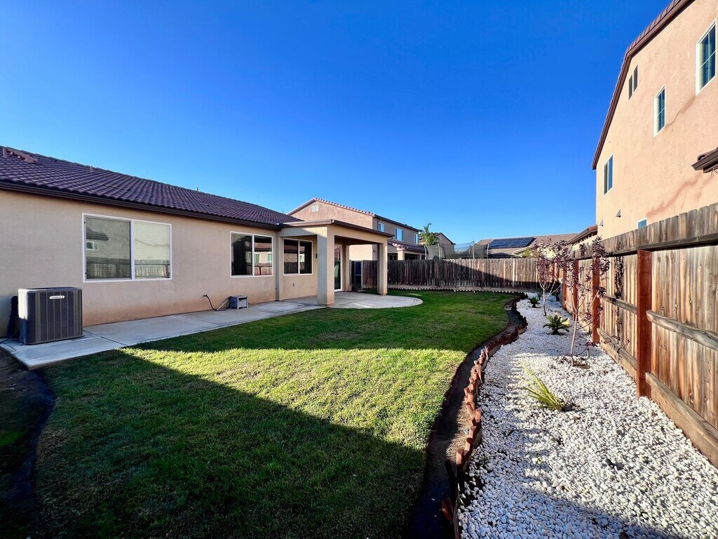 CLICK HERE to schedule a showing: 3 Bedroom | 2 Bathroom | 1,580 Sq. Ft. | Built in 2019 Open floor plan and lots of natural light. Wilson build with beautiful backyard perfect for outdoor enjoyment. Entry opens to a long foyer with 2 bedrooms, and guest bathroom with shower/tub combo. Tile flooring in main living areas, carpet in bedrooms and living room. Kitchen features marble countertops, stainless steel appliances including gas range and oven, built-in microwave, large refrigerator, and dishwasher. Additional dinning space with access to the backyard. Open and spacious living room area. Laundry room includes a washer and dryer. Primary bedroom includes large walk-in closet, bathroom with 2 vanities, separate soaking tub, walk-in shower, and private toilet room. Ceiling fans throughout. 2 car attached garage. Beautiful backyard fully landscaped, with fenced side yard area. Yard care included. Yes pets allowed with pet rent and deposit. Credit score above 650 REQUIRED. No smoking. Tenant responsible for all utilities. Cross streets Ashlan & Locan. Renter's insurance is required. Clovis School district. Short distance to Janet L. Young Elementary. Call to schedule a showing or to contact the office. DRE# 01901101. All information is deemed reliable but not guaranteed and is subject to change.