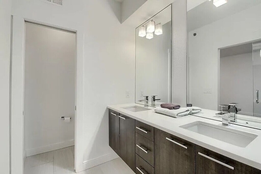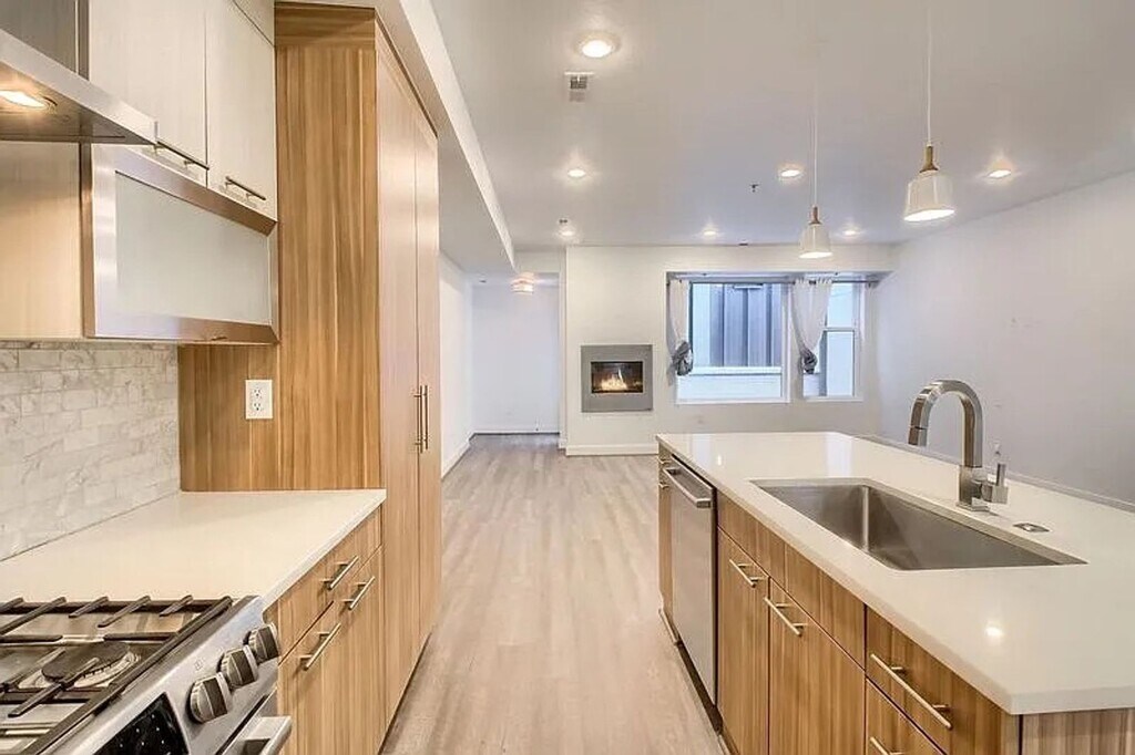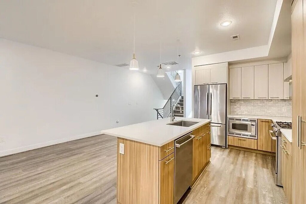 Welcome to this exceptional LoHi townhome in the heart of the Navajo Arts District. With nearly 2,000 sq. ft. and a wide, open layout, this home offers a spacious feel that stands out from the typical townhome design. The main level features hardwood floors, high ceilings, and a seamless flow between the living, dining, and kitchen areas. The kitchen is a true centerpiece with quartz countertops, stainless steel appliances, and a large island, perfect for entertaining. A cozy fireplace anchors the living space, while a main-floor office or non-conforming third bedroom with an attached bath adds flexibility. Upstairs, both bedrooms include en-suite bathrooms, with the primary suite offering a walk-in closet and a beautifully designed bath. The rooftop deck delivers stunning city and mountain views, creating the perfect space to relax or host. Located just steps from LoHi’s top restaurants, coffee shops, and nightlife, with easy access to downtown, this home offers the perfect blend of style, space, and location.