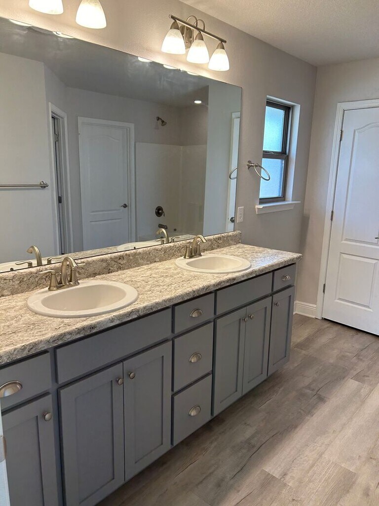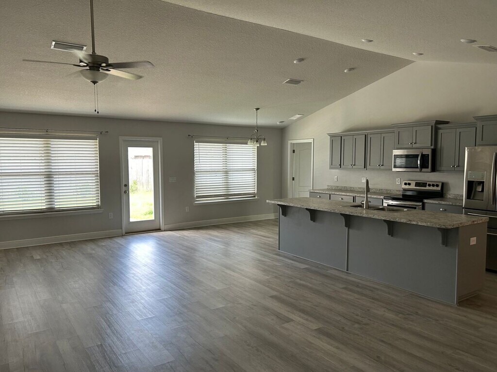 Open floor plan. Wood-look vinyl plank flooring in main living areas with carpet in bedrooms. Great room with cathedral ceiling, ceiling fan & plant ledge. Breakfast nook off kitchen plus formal dining room. Fully equipped kitchen with large island & pantry. Split master suite with ceiling fan, double vanity, garden tub & walk-in closet. Two guest bedrooms share a Jack-n-Jill bath. Ceiling fans in all bedrooms. Inside laundry. Privacy fenced backyard with large open patio. Sprinkler system. Small dogs considered with owner approval. Increased security deposit may be required for roommates. Elementary School: Bellview Middle School: Bellview High School: Pine Forest To get more information or to request a showing of this property please contact .