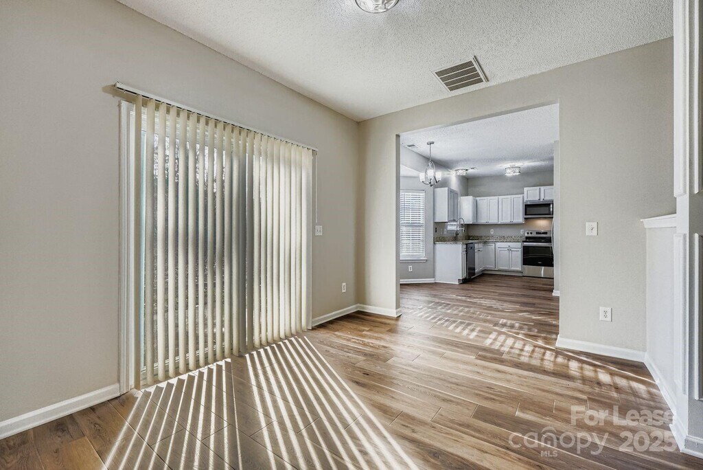 NEW,NEW,NEW! Newly renovated 3 BR/ 2.5 BA 2-story home with 2-car garage. New modern laminate tile flooring,new paint,new granite countertops,new blinds,new light & plumbing fixtures,new stainless-steel appliances- it even comes with a new 65-inch flat screen TV- sharp home! Downstairs has breakfast nook with lots of natural light,separate dining room,great room with gas log fireplace,all with ornate molding for a modern feel. Spacious master bedroom upstairs with huge walk-in closet,dual sinks,garden tub,& separate shower. Nice front porch to relax with the neighbors and the back patio has a garden area and wooded background to enjoy nature. Easy access to I-485 and Uptown. Most pets OK. Available now!