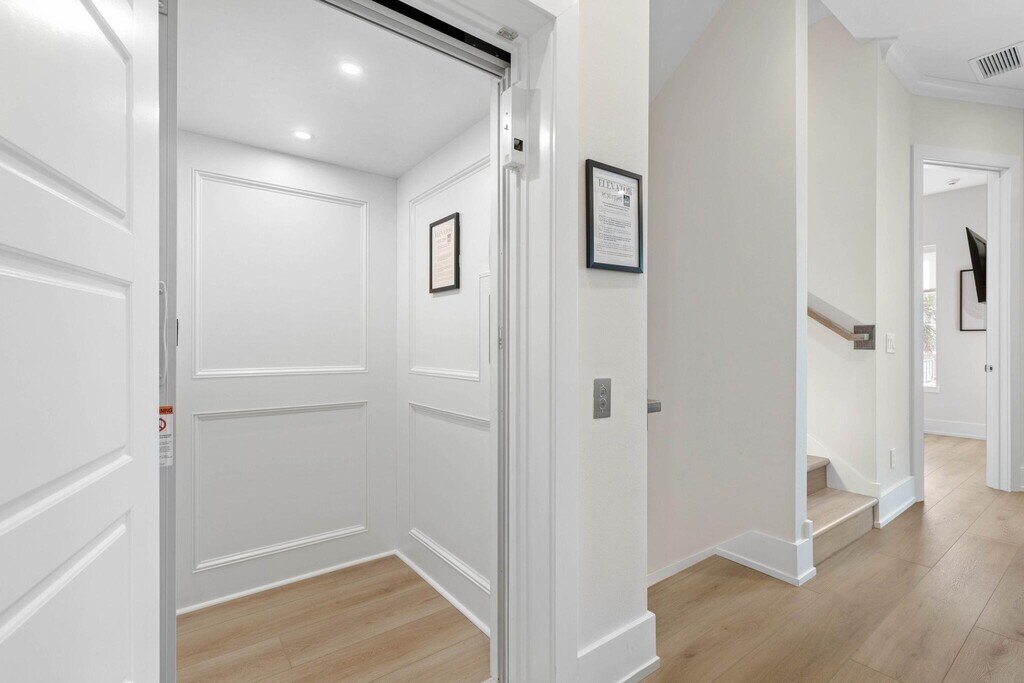 Experience the ultimate Florida coastal lifestyle in this stunning fully furnished three story home with deeded beach access and quick Intracoastal Waterway access. This move in ready rental features five spacious bedrooms four and a half bathrooms and nearly 3,000 sq ft of thoughtfully designed living space. The third floor offers an open concept kitchen dining and living area with breathtaking ocean views. The private primary suite includes a soaking tub separate shower and dual vanities. A private elevator serves all levels. The first floor has a game room kitchenette easy backyard and water access and a hot tub for relaxing or entertaining. Lease with option to buy available. Schedule your private tour today.