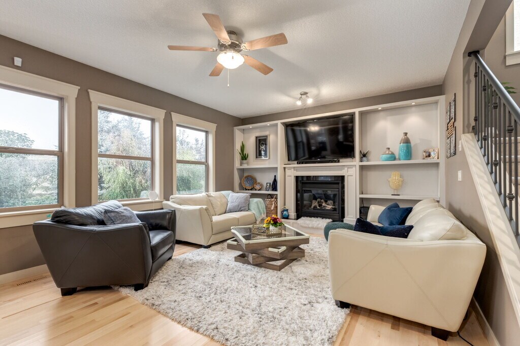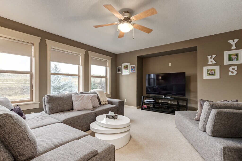 * Beautiful spacious home with large landscaped yard with secluded fire pit. * Enjoy serene living on front porch * Spacious kitchen with centre island, nook, large pantry and stainless steel appliances. * Large family room, built in shelving with gas fireplace * Large bonus room on upper floor * Spacious primary bedroom with large walk in closet * 4 piece ensuite * 2 good size bedrooms on upper floor * 4 piece main main bath with laundry room * Family room in basement with loads of storage and a 2 piece bathroom