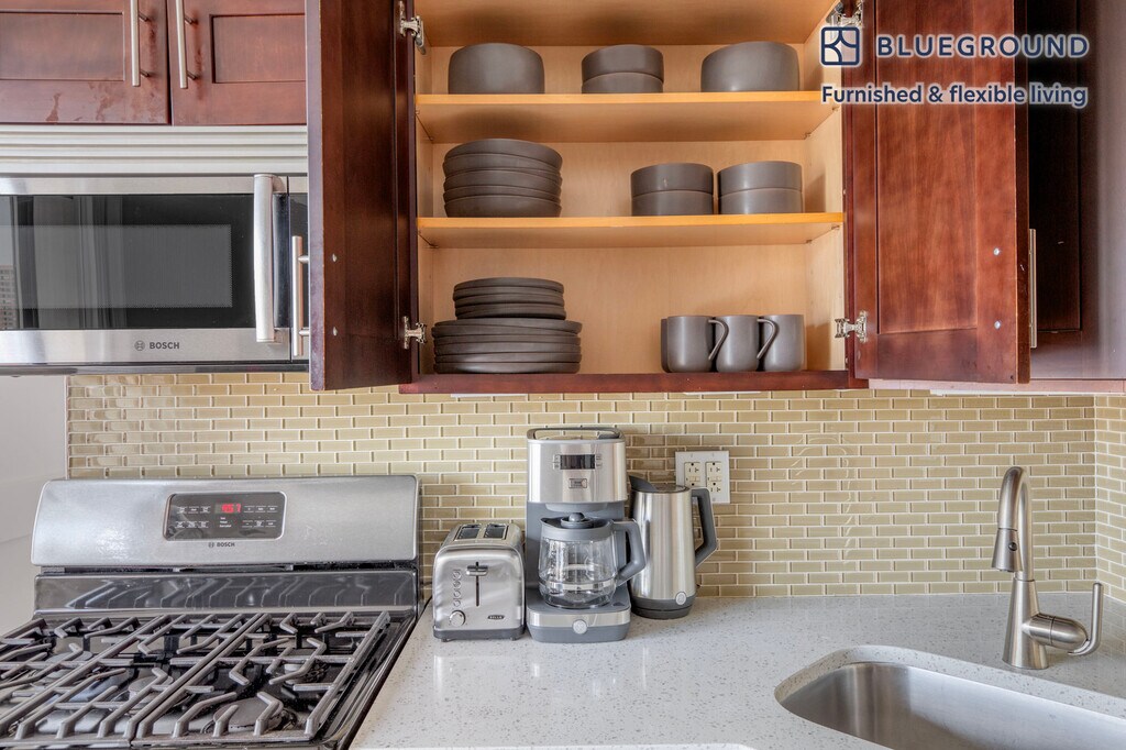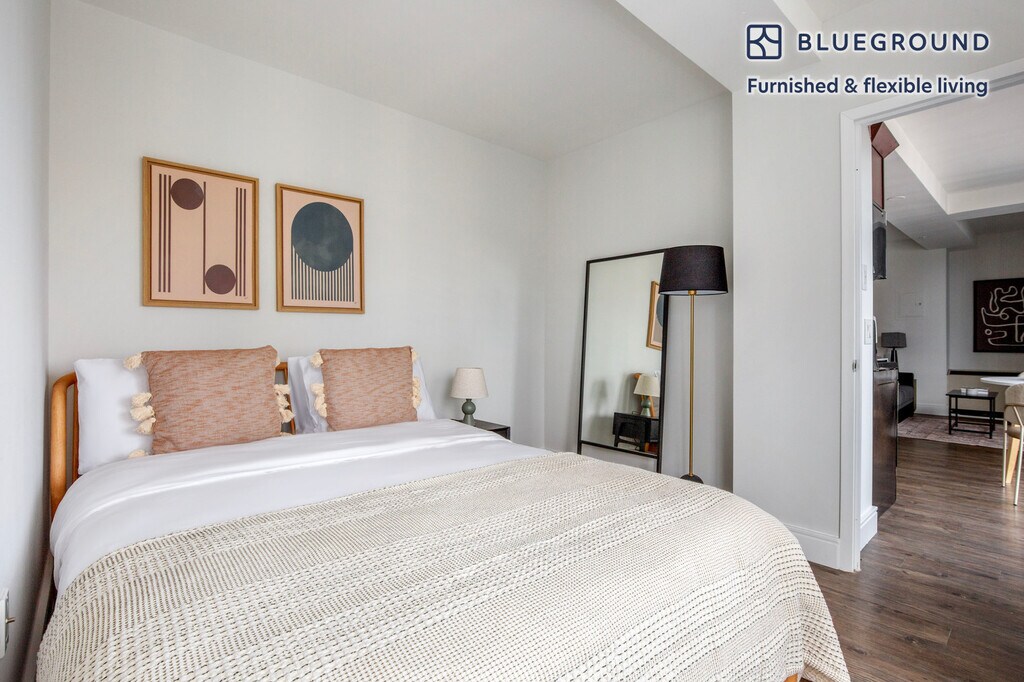 Feel at home wherever you choose to live with Blueground. You’ll love this lovely Yorkville furnished one bedroom apartment with its modern decor, fully equipped kitchen, and bright living room with great balcony views. Ideally located, you’re close to all the best that New York has to offer! (ID #NYC1418) The advertised rate of $4,680/month is the lowest available price, based on a 1 month(s) and 3 day(s) stay with a move-in date of April 17, 2026. If you’re looking for a 1-year stay, the rate is $4,890/month. Rates vary depending on the duration of stay, season, and other parameters. For exact pricing and additional pricing components, please visit our website and enter your desired move-in and move-out dates. The rate is applicable when billed upfront; it can be higher if billed in multiple payments. Brokers are welcome to reach out. Were you looking for an unfurnished lease? Try Blueground instead and upgrade from unfurnished to furnished living: - Furnished at rates comparable to unfurnished - No setup or furniture costs - save thousands - Move-in ready - save time, just bring your suitcase Designed with you in mind Gorgeous furniture, fully equipped kitchen, smart TV, and a premium wireless speaker are just a few of the amenities you’ll find inside this one bedroom apartment. Ideally located in New York, you’ll find a lot to love outside as well. When you’re ready to relax, you’ll be happy to discover every Blueground bedroom comes with superior quality mattresses, fully stocked linens, and cozy towels. We handle everything so you can simply show up and start living. This apartment also offers in-floor laundry. Sleeping arrangements Queen Bed, 63in/160cm Amenities Building amenities unique to this one bedroom apartment include an on-site: - Doorman - Dryer of floor - Elevator - Washing machine on floor - Lounge Arrival and ongoing support The entire apartment is yours to enjoy! Throughout your stay, you’ll have access to our Client Experience team through the Blueground App. You can schedule additional cleanings, submit maintenance requests, and view our neighborhood recommendations with just a few taps. We’ll share all details upon confirmation of your stay. Other things to note Building amenities may have an extra cost. This Blueground apartment has flexible lease options, allowing you to book it for one month, a year, or more. Brokes CYOF. We take great pride in ensuring every photo displayed is shot in our own units with our actual furnishings. That said, we regularly refresh our decor and furniture arrangement, which may differ from what’s pictured. [SI]