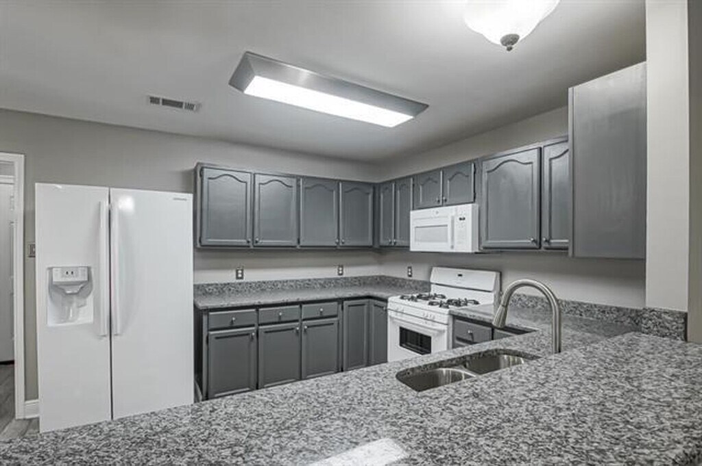 Lovely updated home with neutral colors. Kitchen features granite counter tops, gas stove, newer dishwasher and refrigerator. Inside laundry with shelves for storage is located off the kitchen. Primary bedroom has attached bath and walk in closet plus a trey ceiling. All interior freshly painted in 2019. Garage and front walkway also painted. This one is a must see. No pets