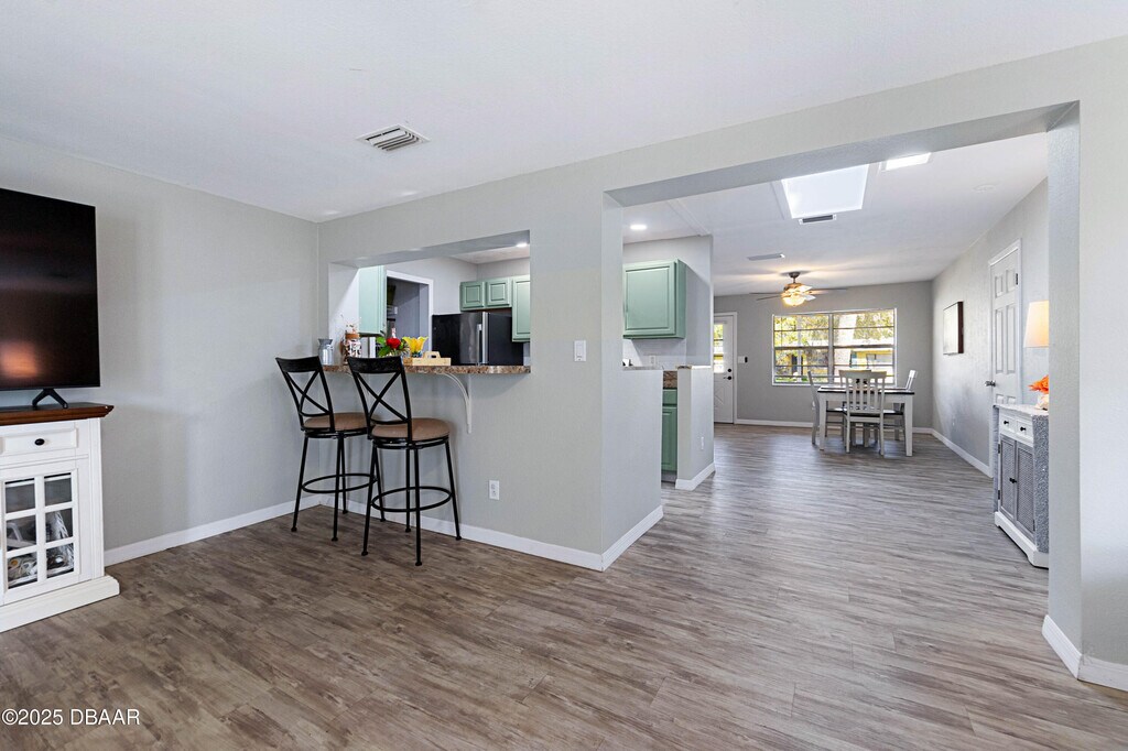 Updated concrete block home in the heart of Ormond Beach. Featuring 3 bedrooms,2 baths,1 car garage. This remodeled residence offers a five-year-old roof and A/C unit,block stucco construction,and central heating/air for year-round comfort. The fenced in back yard is ideal for pets,and the property's central location provides convenient access to shopping dining,and the beach. A solid,well-maintained move in ready home is awaiting. Open concept,kitchen is newly renovated with stainless steel appliances,pantry,new luxury vinyl floor throughout home.