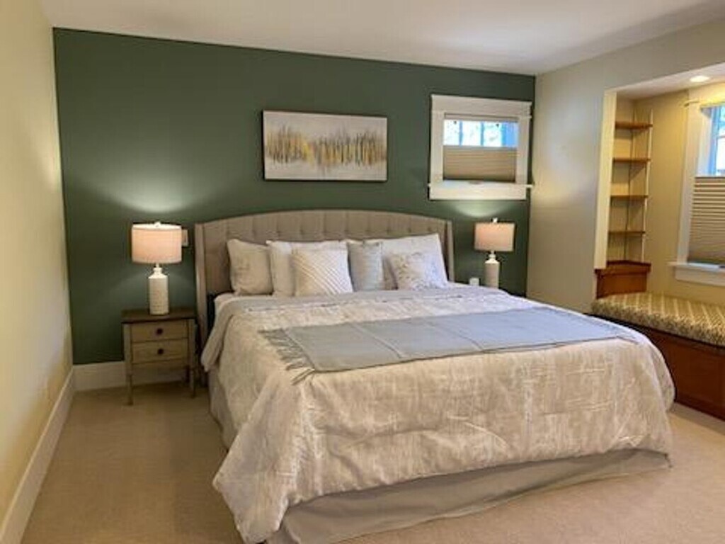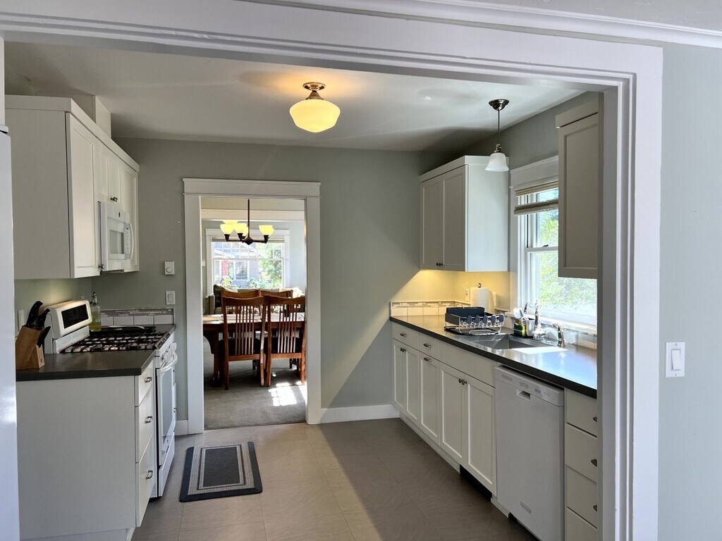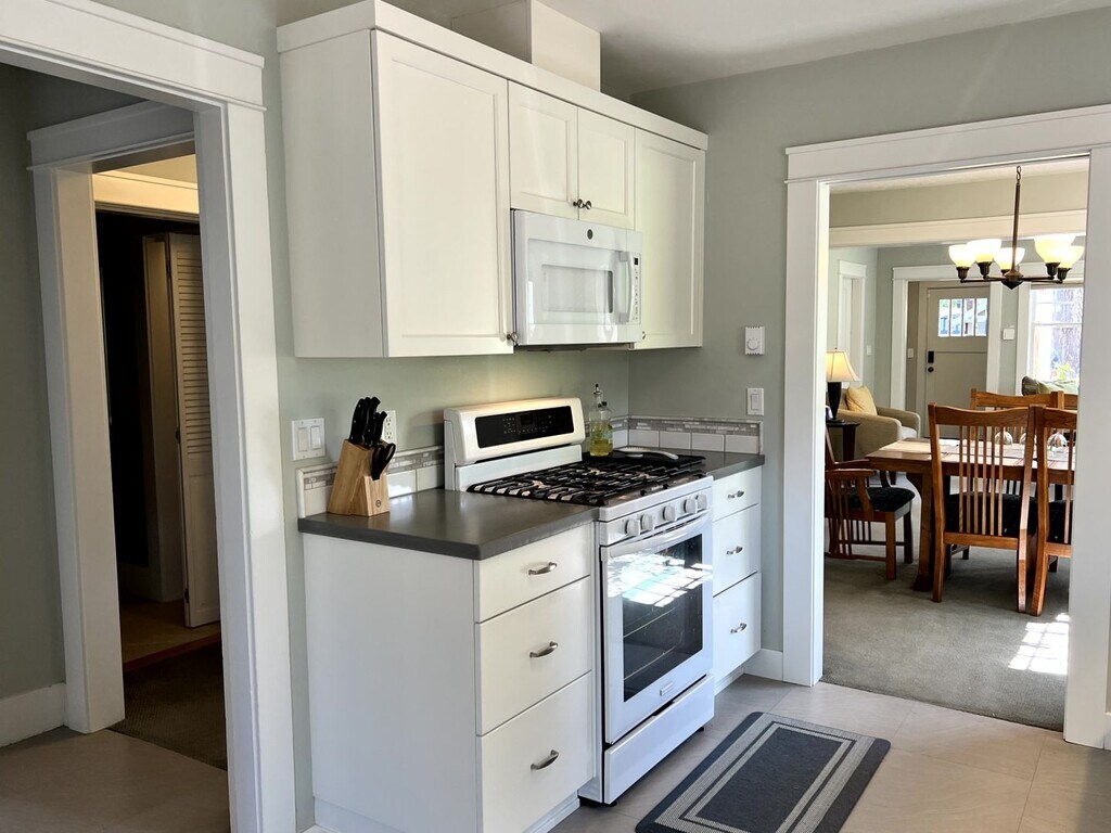 Fully furnished, 30-day minimum stay. Only available until mid-June. Newly remodeled Historical home reserving its original charm. Fully furnished and all utilities are included. Highly desired location within walking distance to downtown, Drake Park, shops, and restaurants. Some highlights include the master suite, modern kitchen, and a front and back yard. Built in 1925 this historical home is newly remodeled while carefully preserving the original character. Originally built by the founder of Bend, the Staats family, and is listed in the National Historic Registry. The plentiful windows throughout the home allow an abundance of natural light. Take off on foot to downtown where you can enjoy the farmers market, the many seasonal events, shops, and restaurants, including fine dining. Float the Deschutes River or shop at the Old Mill District, this home truly is in the heart of it all. There is a master suite with a master bath that includes a unique deep soaking verticle tub and accessible shower. The fully supplied kitchen is modernized with plenty of storage space, a gas stove, an oven, and a dishwasher. You can work remotely in the large office room with a work desk and high-speed wireless internet. A full-size washer and dryer are included. Equipped with two smart TVs, a ring security system, and storage for your outdoor activity equipment such as kayaks, paddleboards, and floaties. If you are traveling with an RV, there is an RV-size parking spot on the property. Off-street parking for your vehicle is also included. Please note this home does have outdoor security cameras and a security alarm. 1 King room 1 Queen room 1 Day bed + trundle room 2 Full bathrooms Large office room Work desk Universal docking station (PC and Mac compatible) 27'' Monitor, keyboard, and mouse Air conditioning Heat Front and back yard Walk-in shower Verticle soaking tub Modern kitchen Dishwasher Gas stove and oven Nook area adjoining the kitchen Dining room Full-size dining table Full-size front-load washer and dryer High-speed internet (600 Mbps) Two 50'' 4K Smart TVs Ring security system Storage shed RV-sized parking spot Off-street parking Street parking also allowed Walk to downtown Landscaping included All utilities included Convenient online tenant portal Contactless check-in 24/7 Emergency staff Please inquire about your dates.