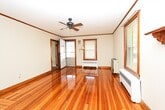 Welcome to this inviting single-family home. This property features charming curb appeal and solid bones,offering comfortable living in a desirable neighborhood. Step inside to discover beautifully refinished hardwood floors that flow throughout the spacious living room. The generous eat-in kitchen provides plenty of room for a dining table and comes equipped with a gas range and dishwasher. From the kitchen,you'll access the three-seasons porch,perfect for extended living space,which overlooks the private yard. The first floor includes a full bathroom with retro-style tiling and a convenient bedroom. Upstairs,you'll find the primary bedroom & an additional bedroom,along with flexible nook spaces ideal for home offices or personal retreats. A full basement offers excellent storage options.Great location w/ easy access to South Shore Plaza,the Expressway,public transit,& area amenities. Tenant responsible for all utilities,strong credit and references,no pets. Welcome home! MLS# 73442834