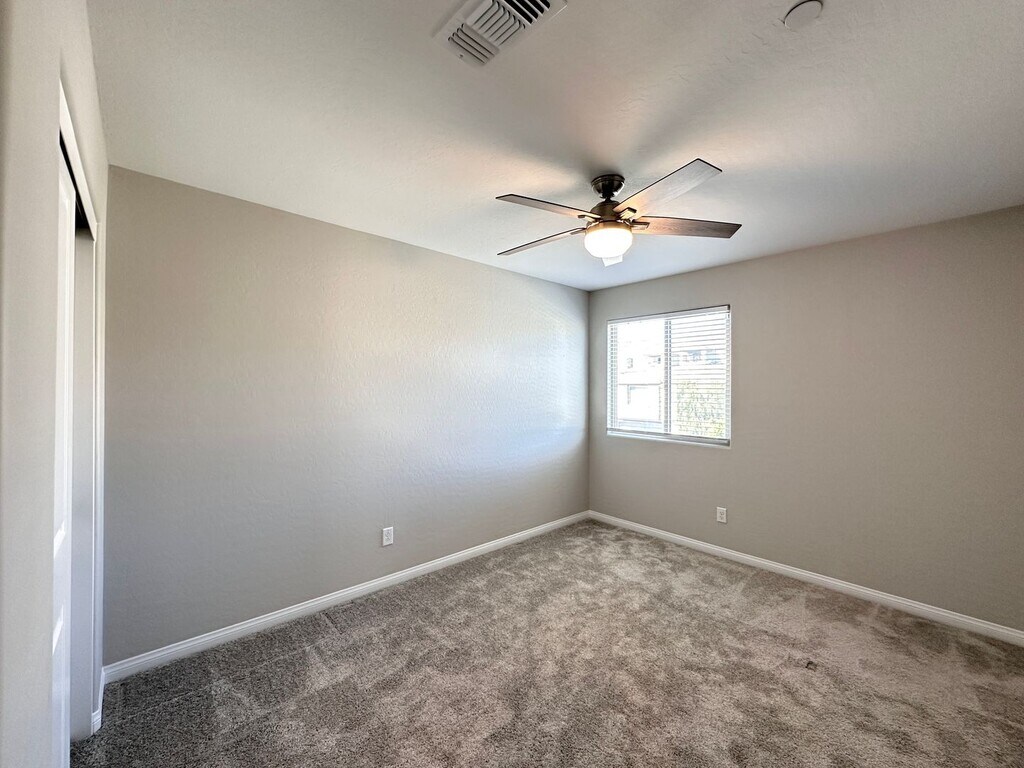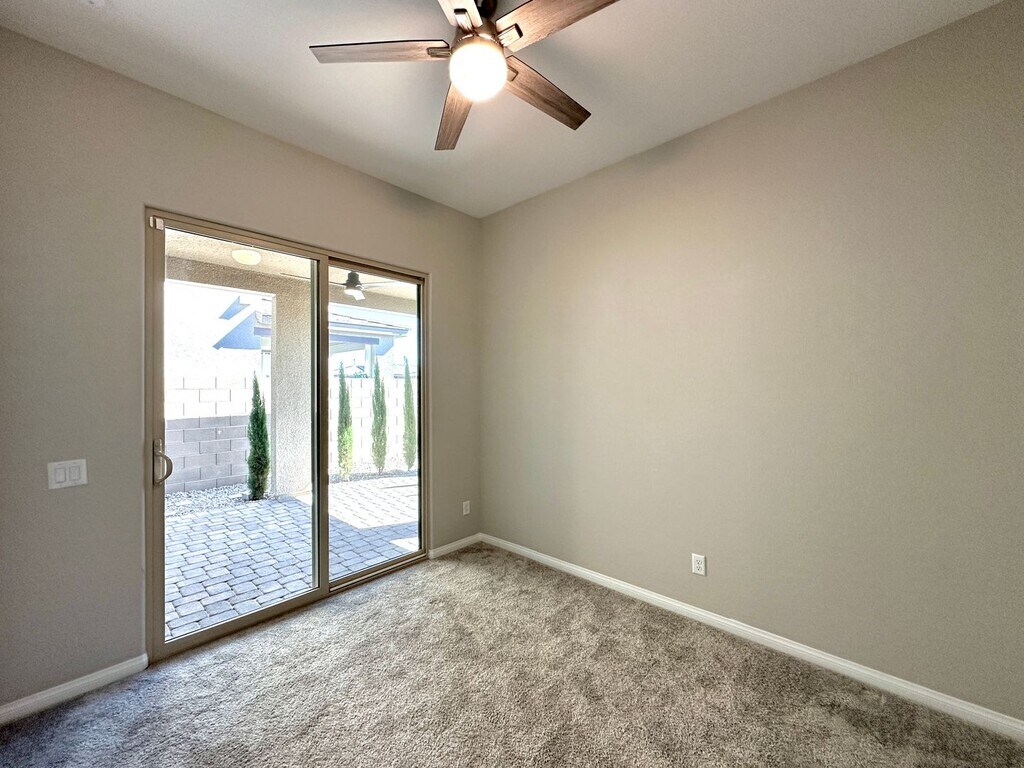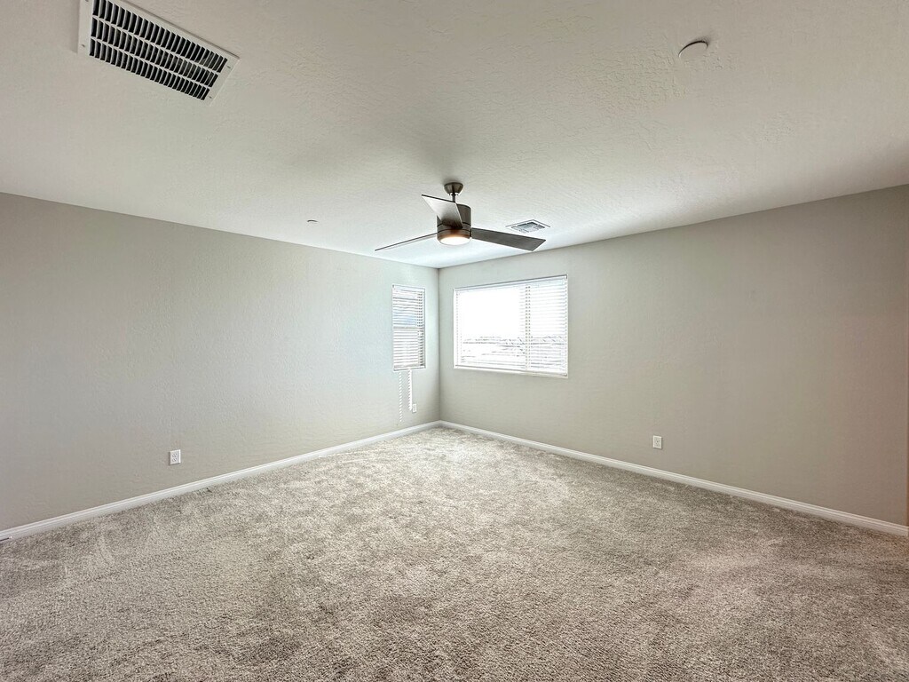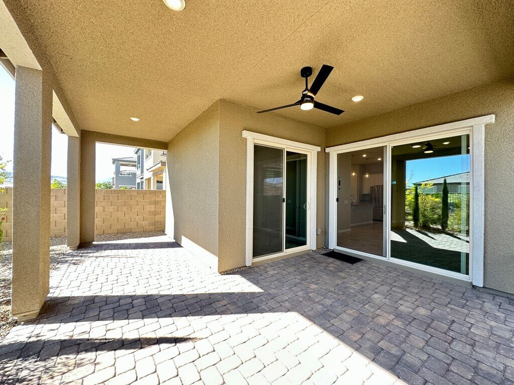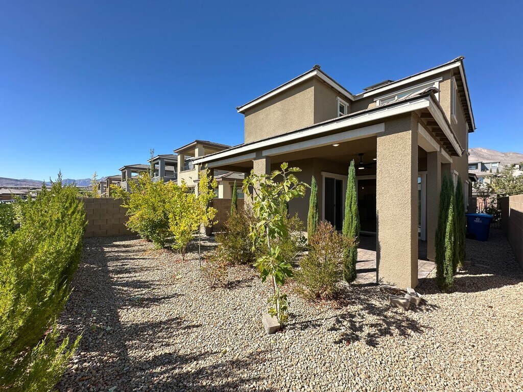 Spacious 2-story home in Summerlin West featuring 4 bedrooms and 3 bathrooms, including a bedroom and full bath downstairs. Enjoy ceiling fans throughout, a bright kitchen with stainless steel appliances, tile flooring downstairs, and carpet upstairs. Upstairs loft provides extra living space, and the backyard offers a covered patio with a fan—perfect for relaxing or entertaining. Price includes per month: $50 for trash/sewer, $130 for solar and $130 for landscaping service 2x a month.