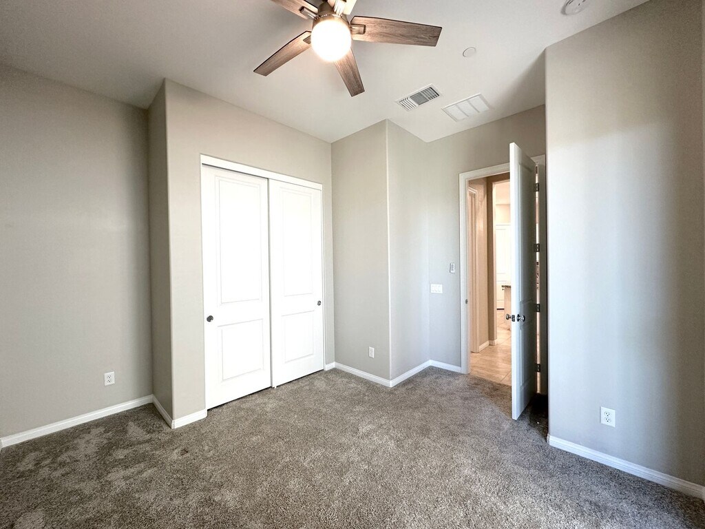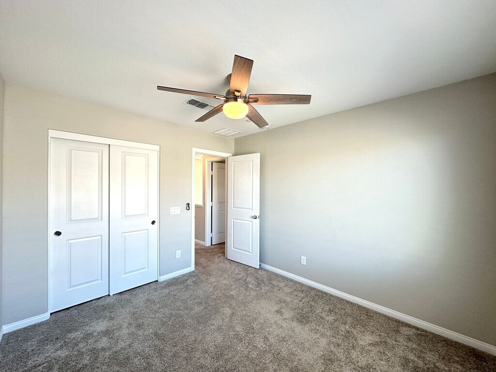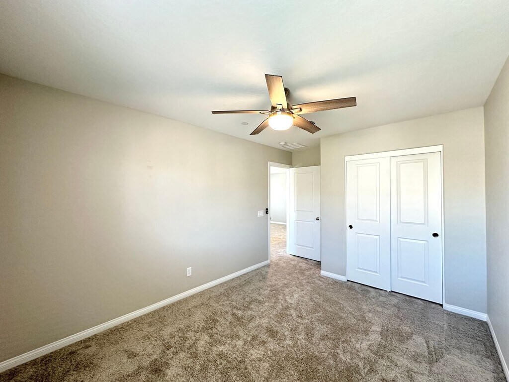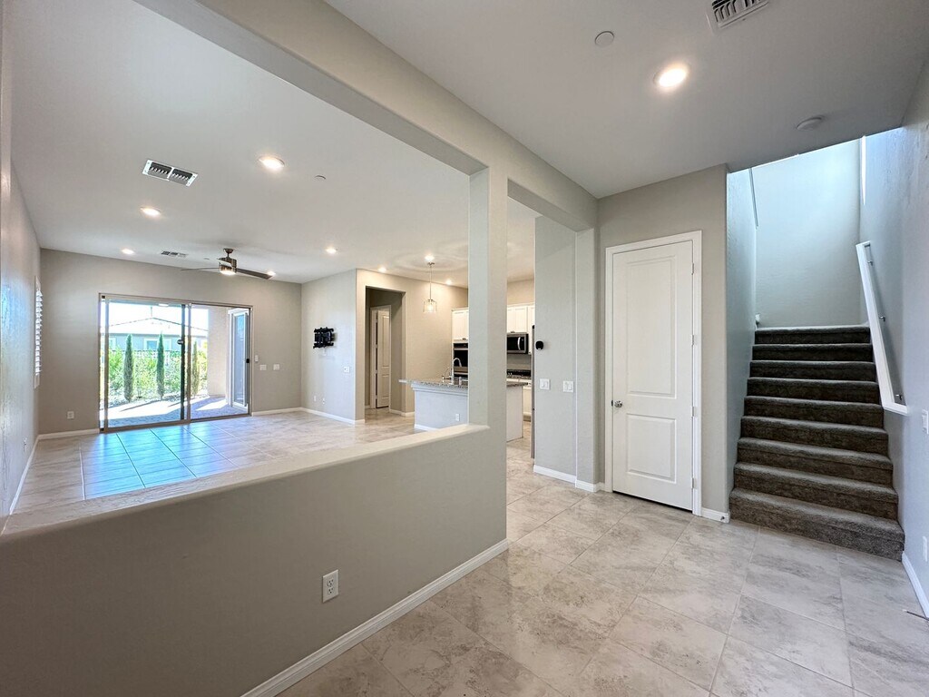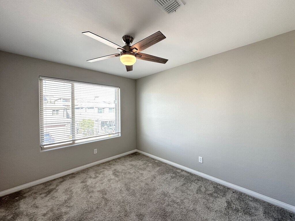 Spacious 2-story home in Summerlin West featuring 4 bedrooms and 3 bathrooms, including a bedroom and full bath downstairs. Enjoy ceiling fans throughout, a bright kitchen with stainless steel appliances, tile flooring downstairs, and carpet upstairs. Upstairs loft provides extra living space, and the backyard offers a covered patio with a fan—perfect for relaxing or entertaining. Price includes per month: $50 for trash/sewer, $130 for solar and $130 for landscaping service 2x a month.