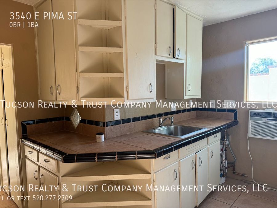 TENANT OCCUPIED - PLEASE CALL OFFICE TO SCHEDULE SHOWING Bright and airy studio located in Central Tucson just minutes from downtown Tucson and the University of Arizona. Tucked back in a small community of stand alone homes this cozy studio offers a large living room/bedroom area with separate eat-in kitchen with plenty of cabinet space. Concrete floors, built ins, and vintage touches while still being updated, off street parking and window A/C units complete the picture. No laundry on site. Tenants responsible for all utilities. Water/Sewer and trash are an additional $50 per month. To schedule your Showing now, call . All information deemed reliable but not guaranteed. Please contact our office to confirm pricing, availability and details at . We do not advertise on Craigslist or Facebook, nor would we require funds to be wired or any funds paid through a payment app on your mobile device. Tucson Realty & Trust Co. Management Services, L.L.C. complies fully with all federal, state and local Fair Housing laws. $250.00 Non-Refundable pet fee for the first pet, $150.00 Non-Refundable Pet fee for each additional pet. $25.00 per month, per pet, pet rent. Studio Wall A/C