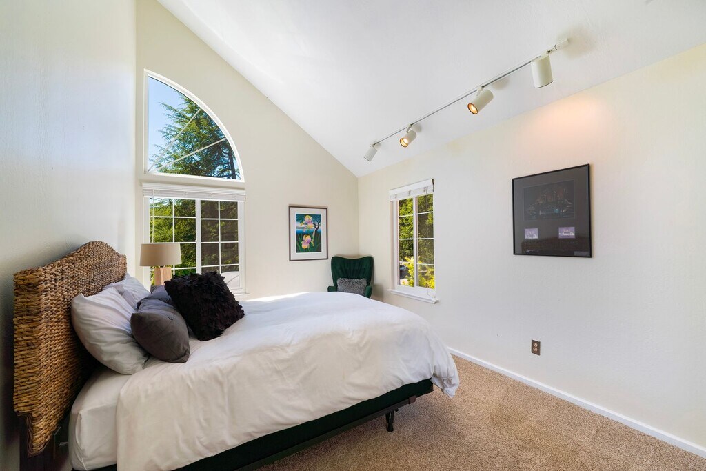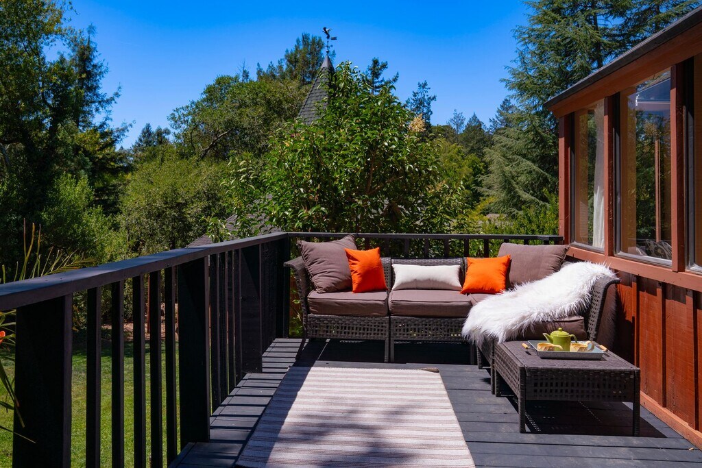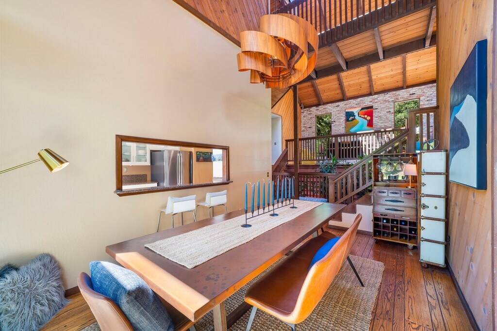 A rare opportunity to enjoy complete privacy in the highly coveted Montecito Heights, just a half-mile from vibrant shops and dining. This mid-century modern masterpiece is meticulously maintained and boasts soaring ceilings with skylights, atrium, sunroom, gorgeous hardwood floors, and new custom light fixtures. Attached 2-car garage, washer, dryer, and refrigerator are included. With 5 bedrooms (two with lofts), 3.5 bathrooms, and large custom office with closet, this special residence boasts unparalleled aesthetics, luxury, comfort & versatility. The private primary en-suite bedroom showcases a vaulted ceiling, jetted tub, balcony, custom closet & picturesque windows framing nature, while two living rooms beckon w/ fireplaces, & seamlessly extend to sprawling wrap around deck & yard. This magical property features a new seasonal creek with river rocks. Relax and enjoy wildlife. This is a great opportunity to live in the heart of Santa Rosa and experience the full wine country lifestyle.