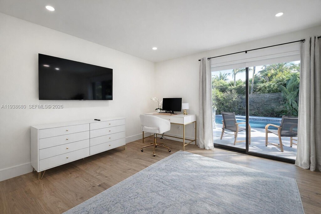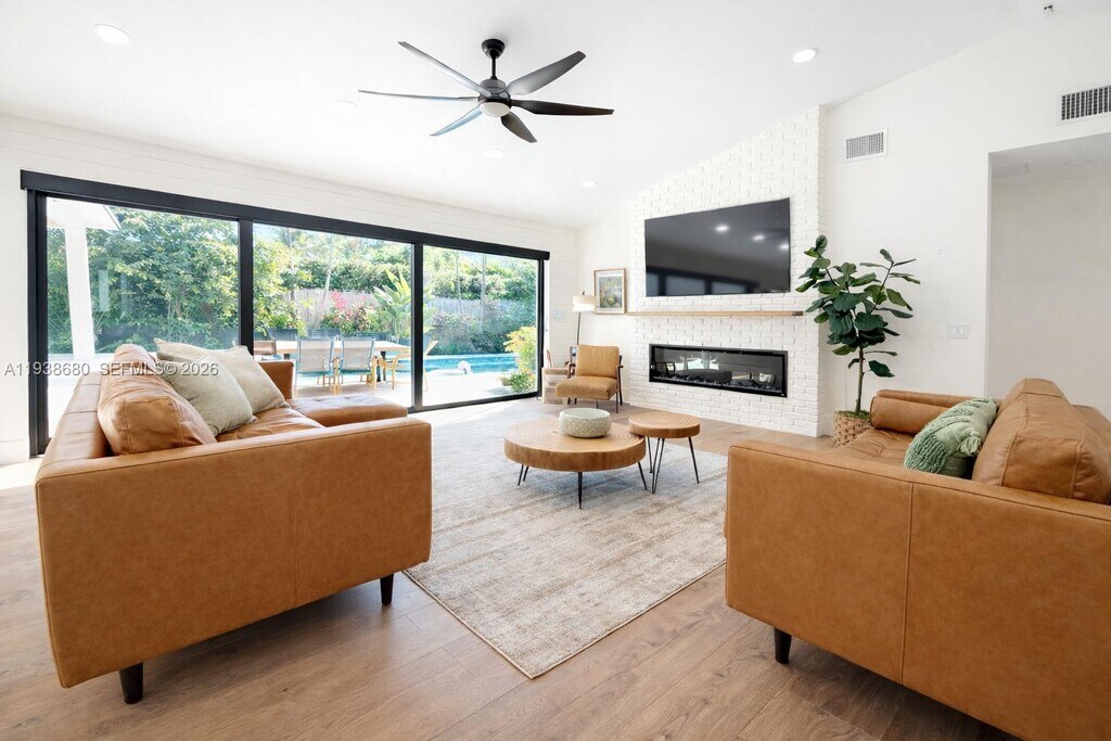 Elegant Lighthouse Point Island Retreat, available Short Term & Long Term furnished including all services ( water, electricity, internet ,landscaping, pool, cable) this new luxury home is minutes from beaches, dining, and entertainment, and just 10 minutes from Pompano and Deerfield Beach. Enjoy 360° pool and garden views from nearly every room, a heated private pool, and seamless indoor-outdoor living with outdoor dining for 8, lounge seating, sun loungers, and BBQ. The open-concept space features a chef’s kitchen, spacious living room with large TV, cable, bar, and fireplace, plus a converted garage serving as a game room/4th bedroom with smart TV, basketball setup, pull-out couch, and office space. The primary suite offers a king bed, ensuite bath, and walk-in closet. Additional bedrooms include three queen beds, one with a desk. All rooms have TVs. A full laundry room with sink, ample parking, and a park across the street with tennis courts and playground complete this upscale South Florida escape—perfect for relaxing or entertaining. MLS # A11938680