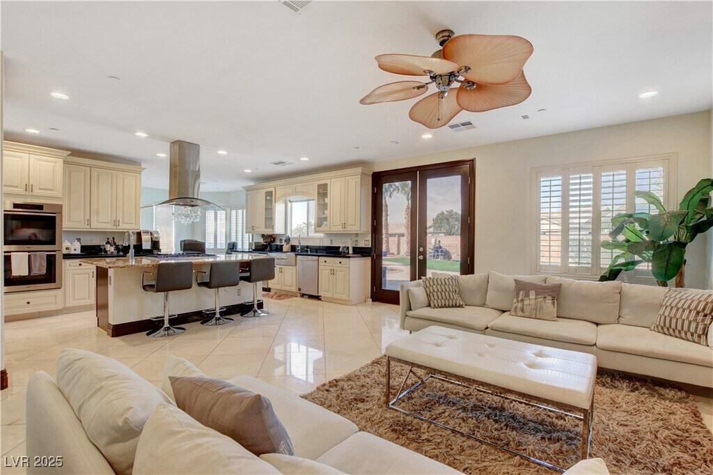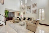 Welcome to your dream home! Offered fully furnished with luxurious high-end designer pieces, this 5-bedroom, 4-bath residence is move-in ready and situated on a rare ¼-acre lot in a prestigious gated community. Inside, soaring ceilings, abundant natural light, and Travertine tile flooring throughout set the tone for elegance. The chef’s kitchen impresses with granite countertops, a large island, custom cabinetry, premium stainless steel appliances, and a spacious dining area—perfect for everyday living or entertaining. The expansive primary suite offers a walk-in closet and a spa-inspired bath with dual sinks, a soaking tub, and a walk-in shower with bench seating and a multifunction rain shower head. Generously sized bedrooms provide versatility and comfort for family and guests. Outside, your private oasis awaits with a sparkling pool, relaxing spa, and covered patio—an entertainer’s paradise and a retreat for year-round enjoyment.