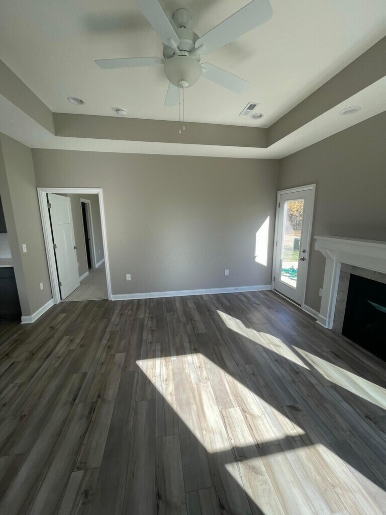 This stunning brand-new ranch home sits on a private,tree-lined lot with convenient access to the Powell Path System. Located within the Olentangy School District,this home offers modern comfort and high-quality finishes throughout. Step inside to a bright,open floor plan filled with natural light. The kitchen features an oversized island with seating for five,quartz countertops,GE stainless steel appliances,soft-close cabinetry,and LVP flooring. The Great Room includes a cozy fireplace with a custom mantle and a tray ceiling with recessed lighting,creating an inviting space for relaxing or entertaining. The primary suite offers a spacious walk-in closet and a luxurious private bath with a double vanity,tile flooring,and a walk-in shower with a built-in bench. Two additional bedrooms and a second full bathroom provide plenty of space and flexibility for your needs. Additional highlights include white trim and three-panel doors,a convenient laundry room,mud hall,and a two-car garage with an automatic opener. Enjoy the perfect blend of style and comfort.