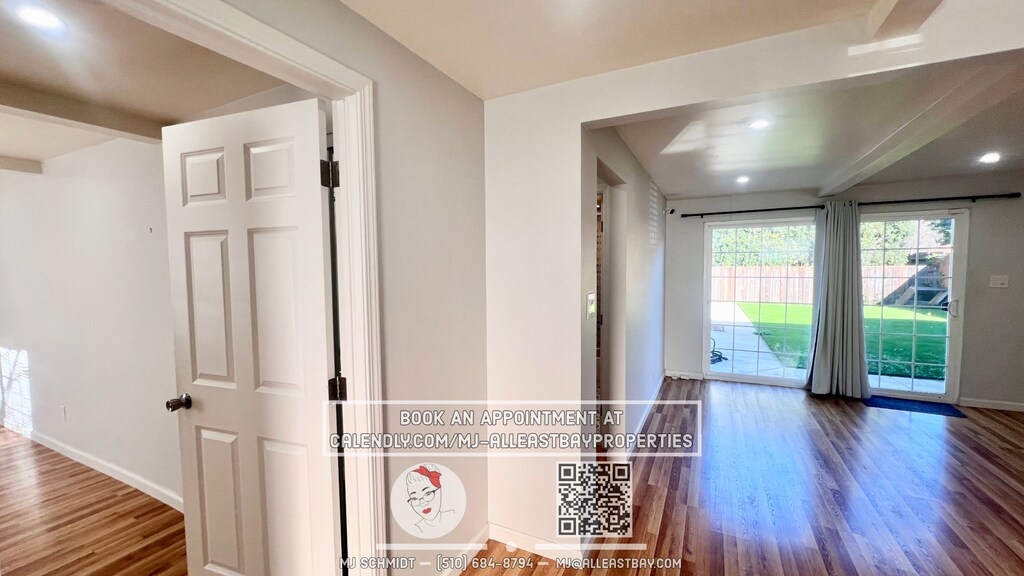 This beautifully remodeled smart home offers a harmonious blend of modern comforts and functionality. The home features 3 bedrooms, including a spacious primary bedroom, and 2 bathrooms with contemporary fixtures and ac/heater units. The kitchen boasts modern appliances and ample cabinetry. Hardwood floors run throughout, complementing the bright, airy ambiance created by recessed lighting and large windows. A sliding glass door leads to an outdoor area, while the attached garage provides convenient storage and EV Charging station. The property's efficient layout maximizes space usage, making it an ideal choice for those seeking a modern, low-maintenance living environment. AI Scheduling by text - 1, email - Maryanne “MJ” Schmidt Cell Office DRE 02125244 All East Bay Properties DRE# 01516255 We are an Equal Opportunity Housing Provider and follow all fair housing laws. For more information, contact California Department of Fair Employment and Housing (DFEH) at