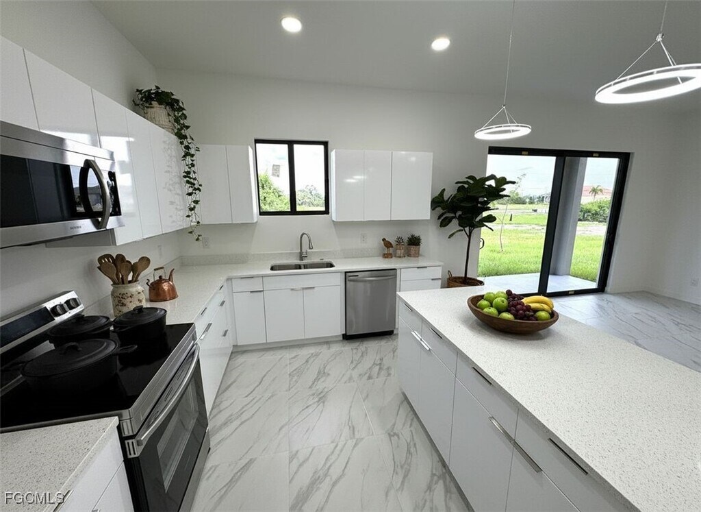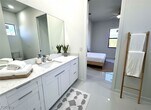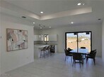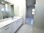 This stunning,move-in-ready home offers luxury and style in a prime location. Designed with neutral tones,it features an inviting paver driveway and impeccable landscaping for exceptional curb appeal. The open floor plan boasts cathedral and 10-foot ceilings,24x24 tile flooring,and a split-bedroom layout for privacy. The luxurious primary suite includes white cabinetry,quartz countertops,and glass shower doors. Built with top-quality materials by a renowned builder,the home offers impact windows,an irrigation system,and an automatic garage. With 4 bedrooms and 3 baths,this rare opportunity will be available starting in February.