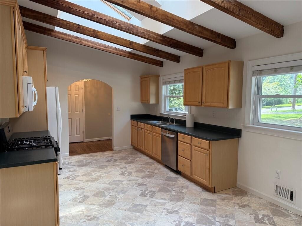 This is the one you've been waiting for! Come check out this amazing house in an amazing location. Northwoods community is centrally located with parks and green spaces throughout. This ranch home is located on a large flat lot with lots of outdoor space to enjoy. The interior has hardwood floors throughout and vaulted ceilings with wood beams. Tons of natural light throughout. Washer / dryer included. Yard maintenance included in the rent. Flat driveway and two car garage. The home has it all!