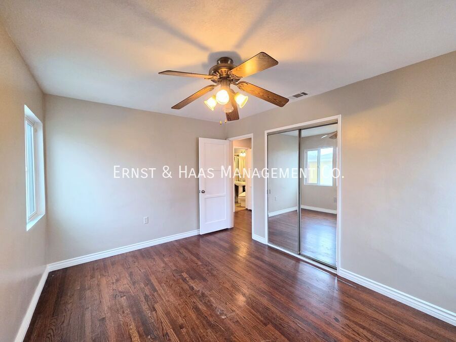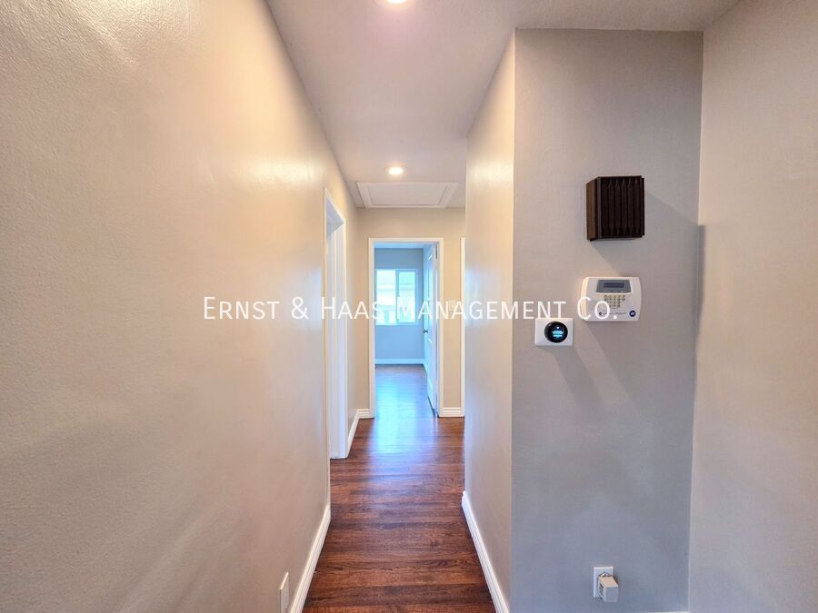 Lovely 3-bedroom, 1-bath home located in the highly desirable Wrigley Heights neighborhood of Long Beach, situated on a large corner lot with lush, California-native landscaping that is professionally maintained as part of the lease. The property features a detached two-car garage with remote opener and a spacious rear yard offering a lawn area, raised planters, and an extended covered patio—ideal for outdoor entertaining, barbecuing, or simply relaxing. Inside, the home offers rich hardwood floors and fresh paint throughout. The expansive living room is filled with natural light and features recessed lighting, large windows, and an adjoining dining area with a ceiling fan. The updated kitchen includes attractive oak cabinetry, refrigerator, stove, and dishwasher. A central hallway connects all three bedrooms and the bathroom, with each bedroom offering a ceiling fan and well-proportioned closet space. Pets are welcome. This property is equipped with a Codebox and can be viewed via the ShowMojo scheduled self-guided tour. To schedule a showing from the Ernst and Haas Management website, click on “Schedule a Showing”, then select a date and time from the ShowMojo available time slots. For more information on this or any other available property, please contact Ernst & Haas Management at , or visit us online at